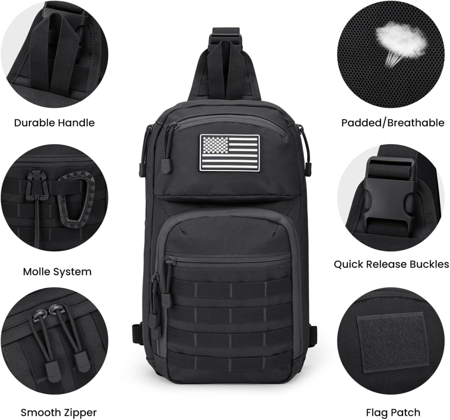 G4Free 10L Tactical EDC Sling Bag Backpack Military Molle Chest Shoulder Assault Pack for Concealed Carry(Black)(Black)