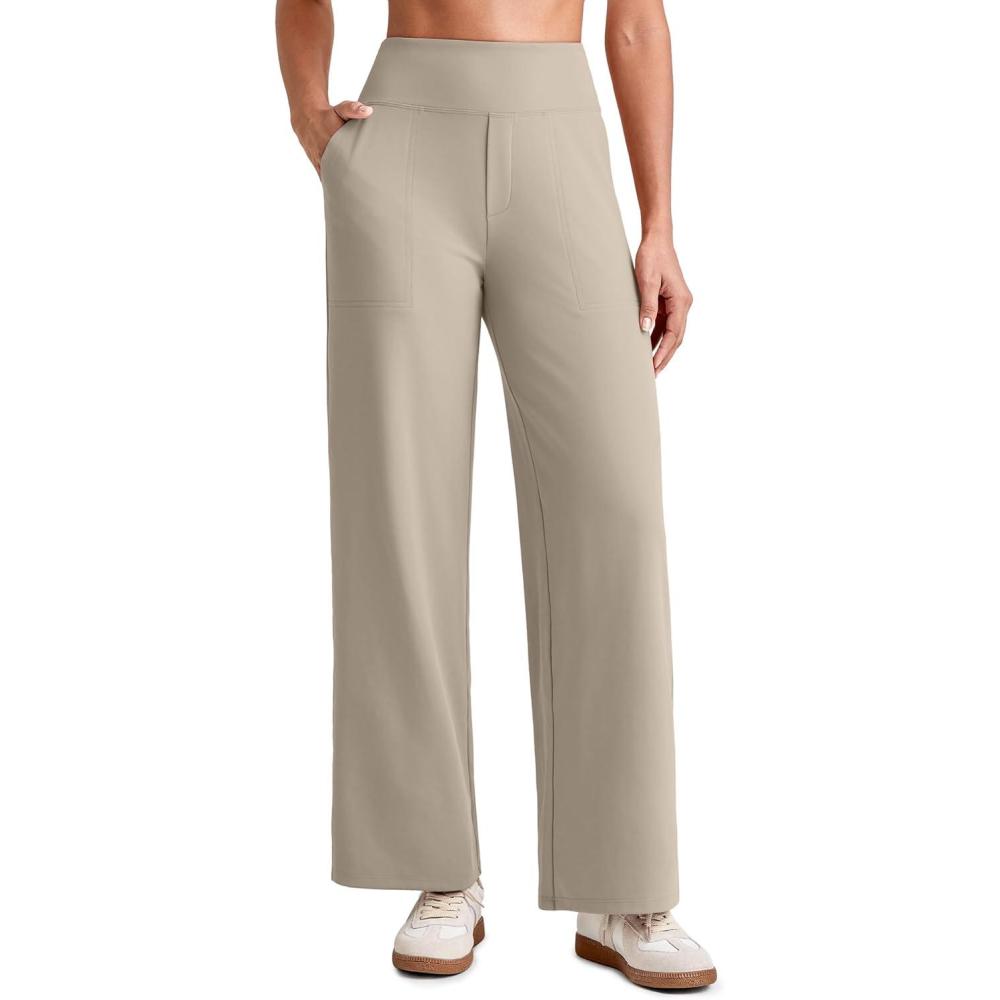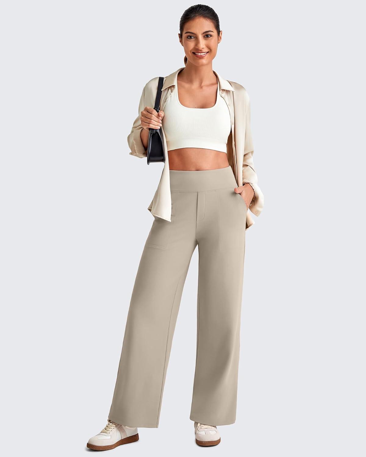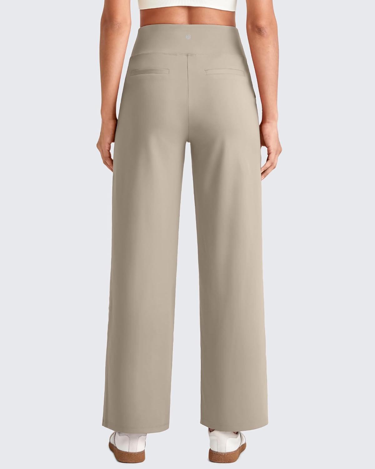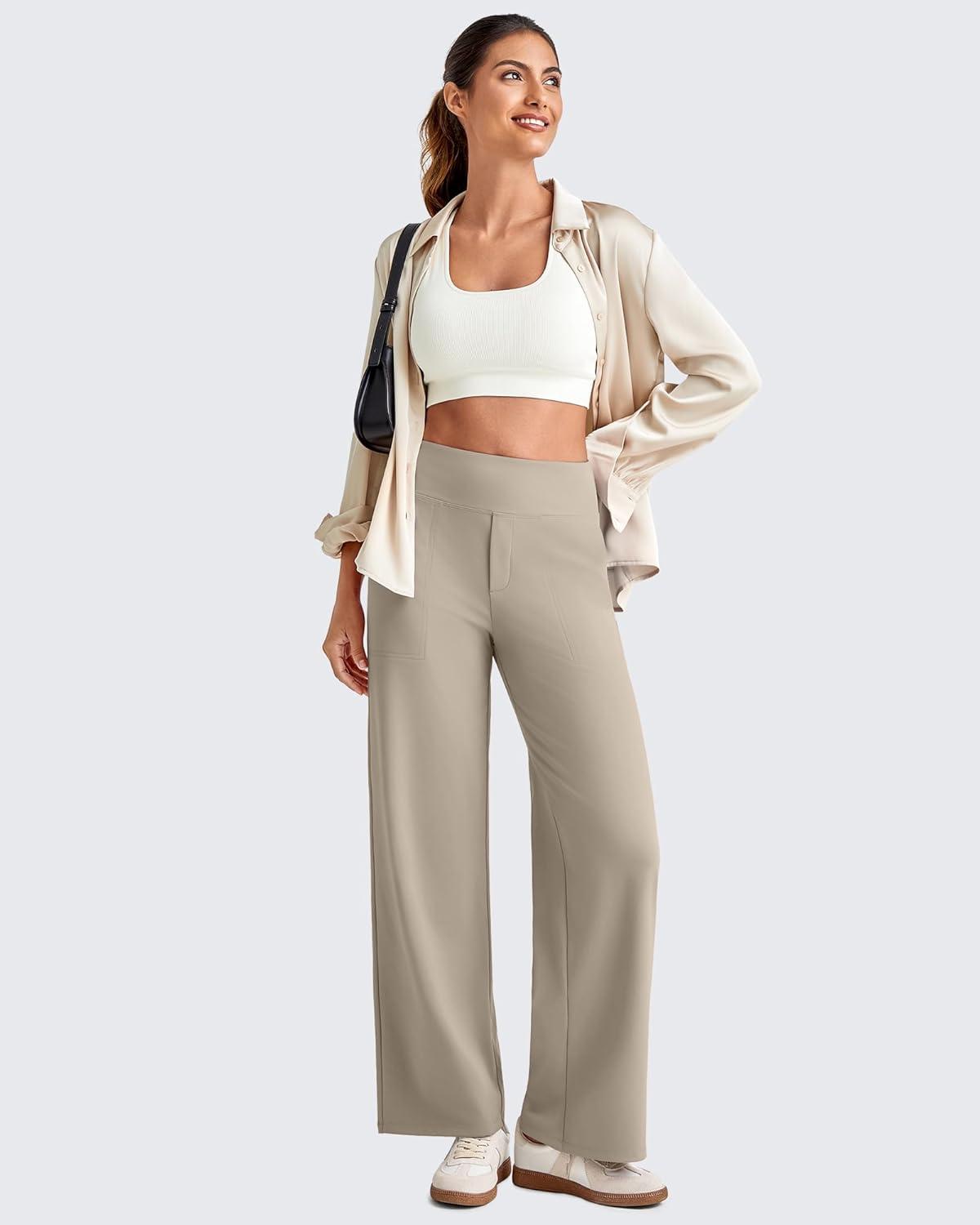 imageG4Free 255275295 Wide Leg Pants for Women 78 Length Yoga Dress Pants High Waist Stretch with Pockets Casual WorkMatcha