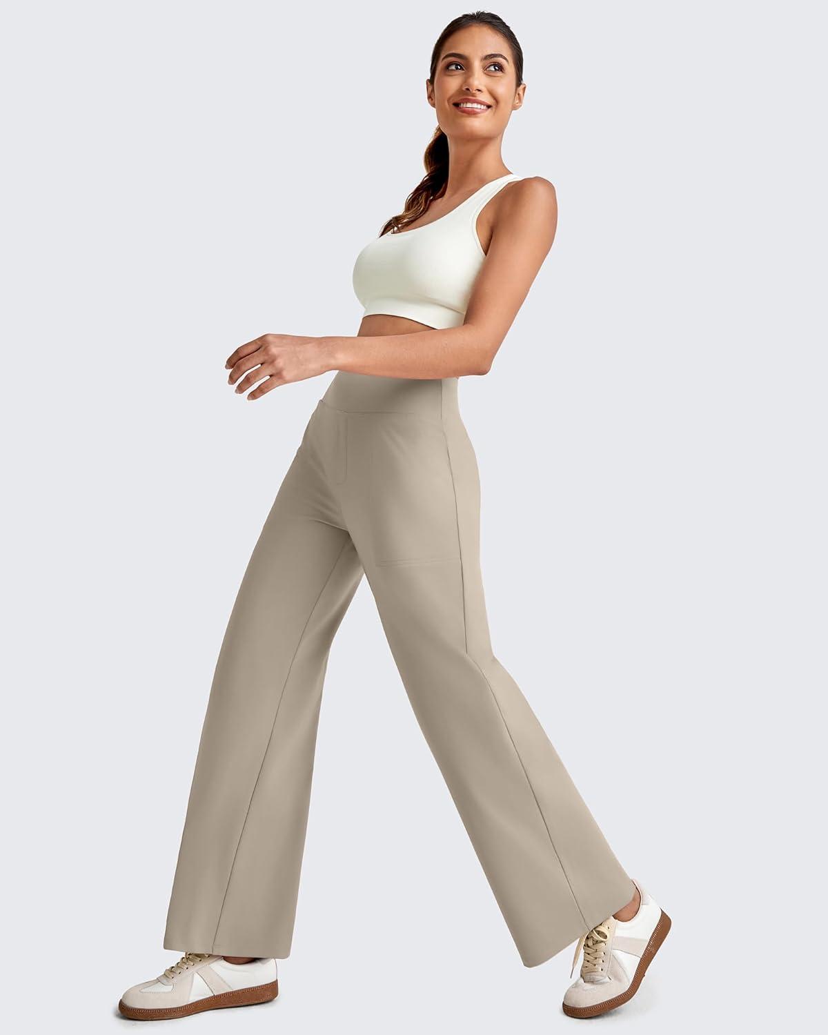G4Free 25.5”/27.5”/29.5” Wide Leg Pants for Women 7/8 Length Yoga Dress Pants High Waist Stretch with Pockets Casual Work(Matcha)