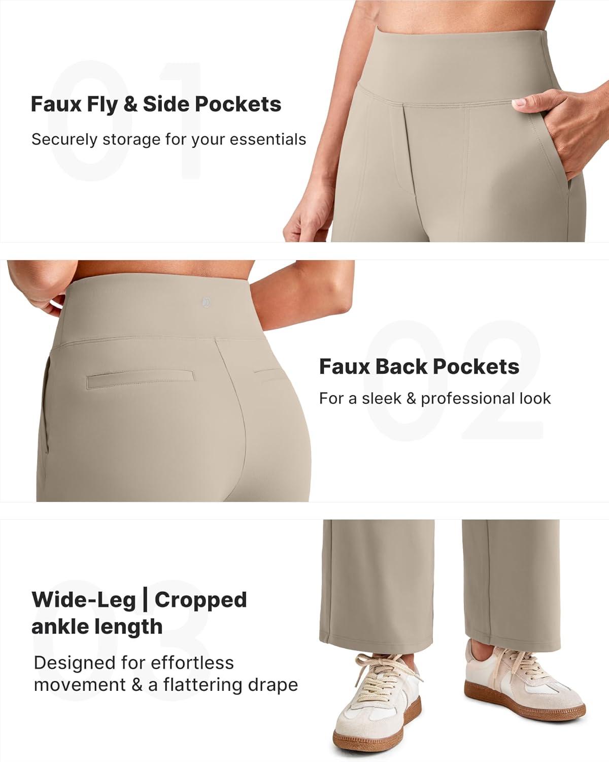 G4Free 25.5''/27.5''/29.5'' Wide Leg Pants for Women 7/8 Length Yoga Dress Pants High Waist Stretch with Pockets Casual Work(Matcha)