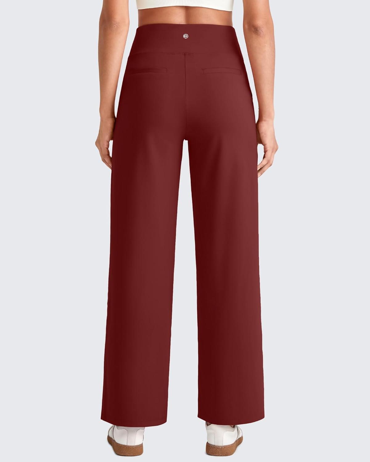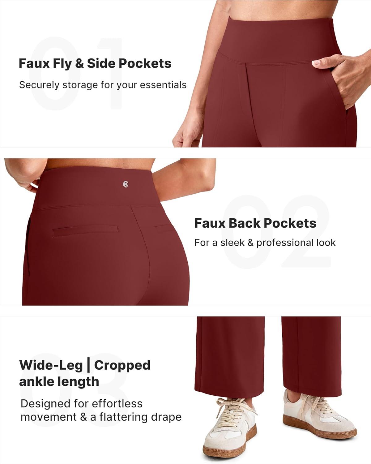 G4Free 25.5''/27.5''/29.5'' Wide Leg Pants for Women 7/8 Length Yoga Dress Pants High Waist Stretch with Pockets Casual Work(Wine)