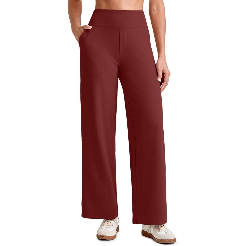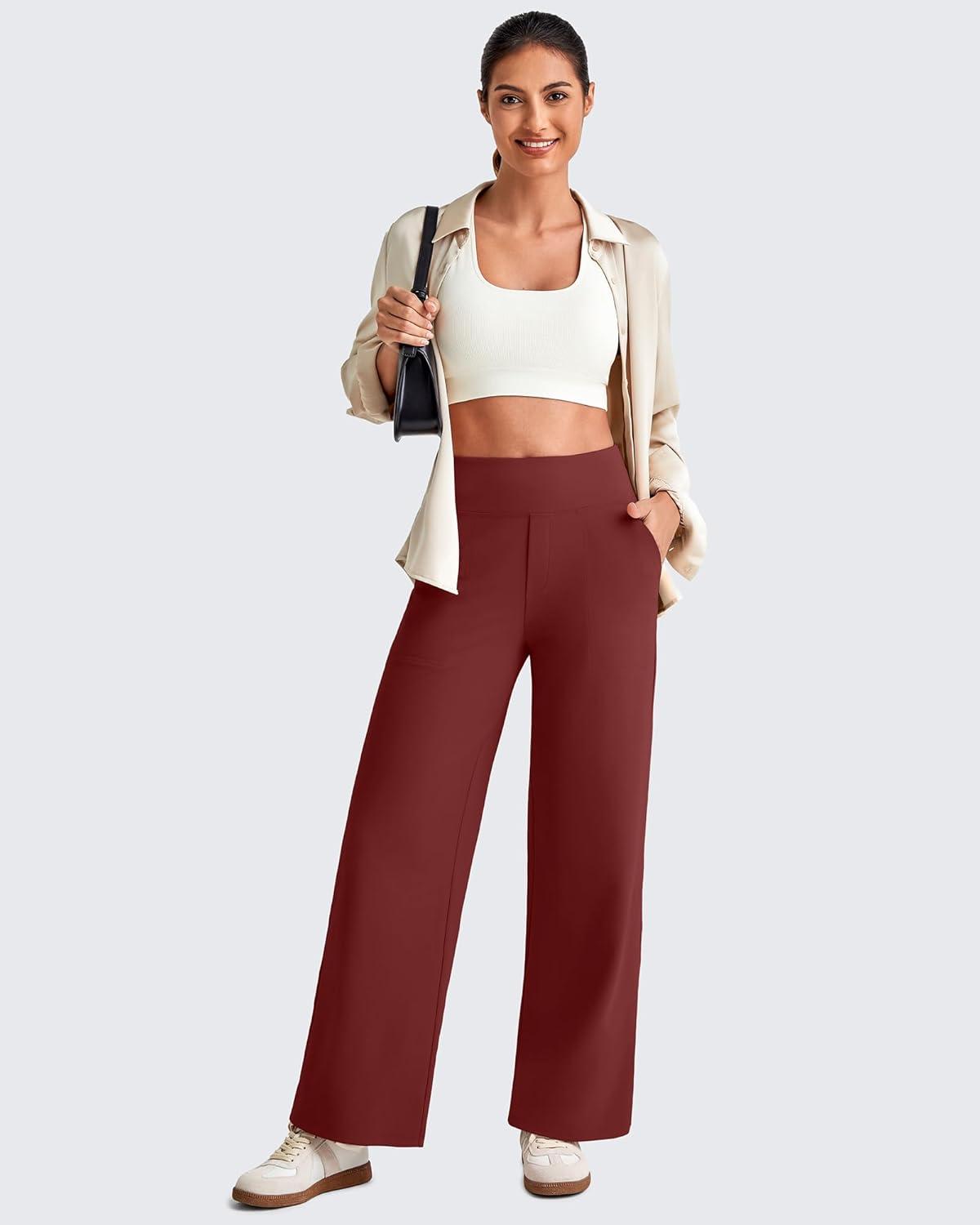 imageG4Free 255275295 Wide Leg Pants for Women 78 Length Yoga Dress Pants High Waist Stretch with Pockets Casual WorkWine