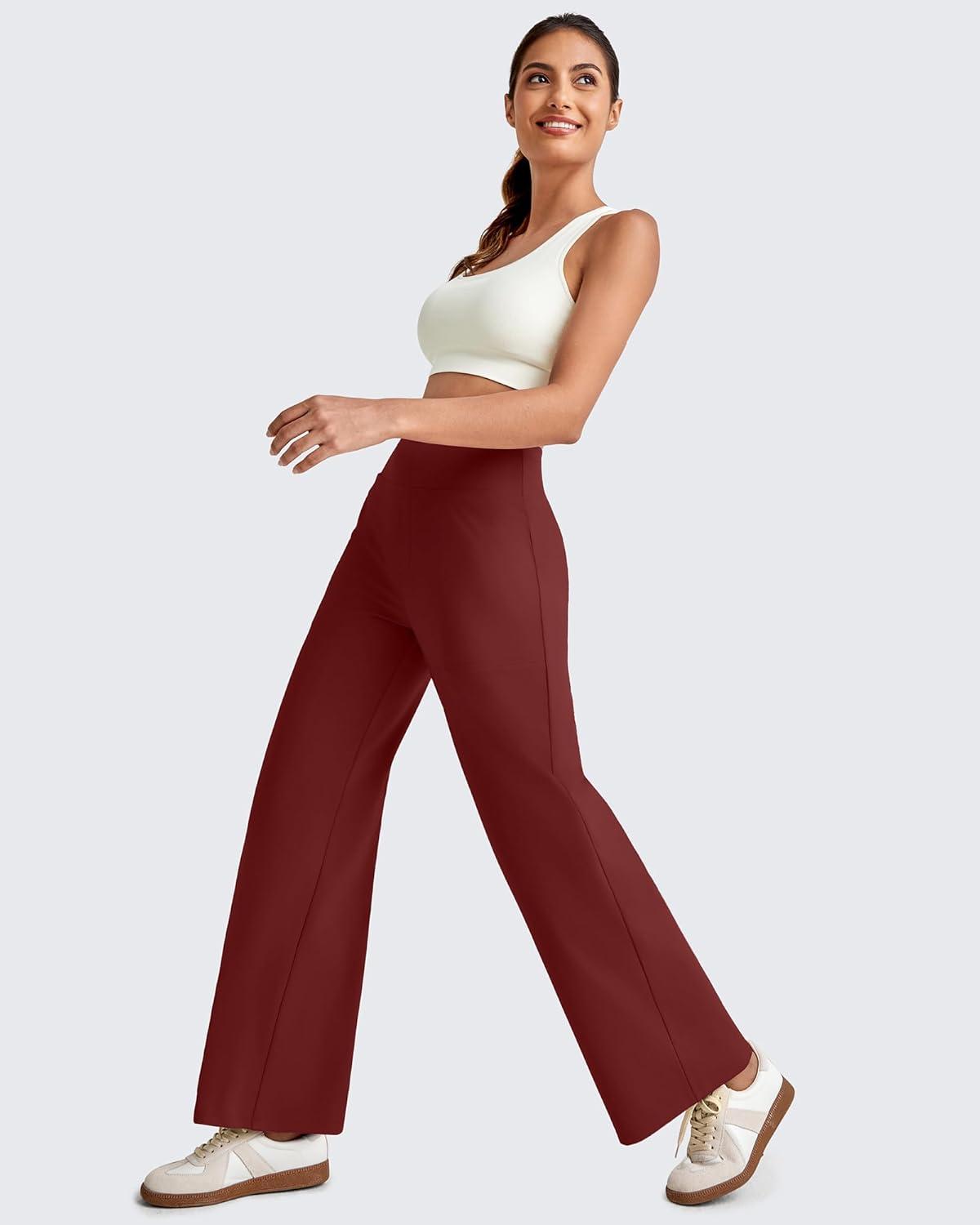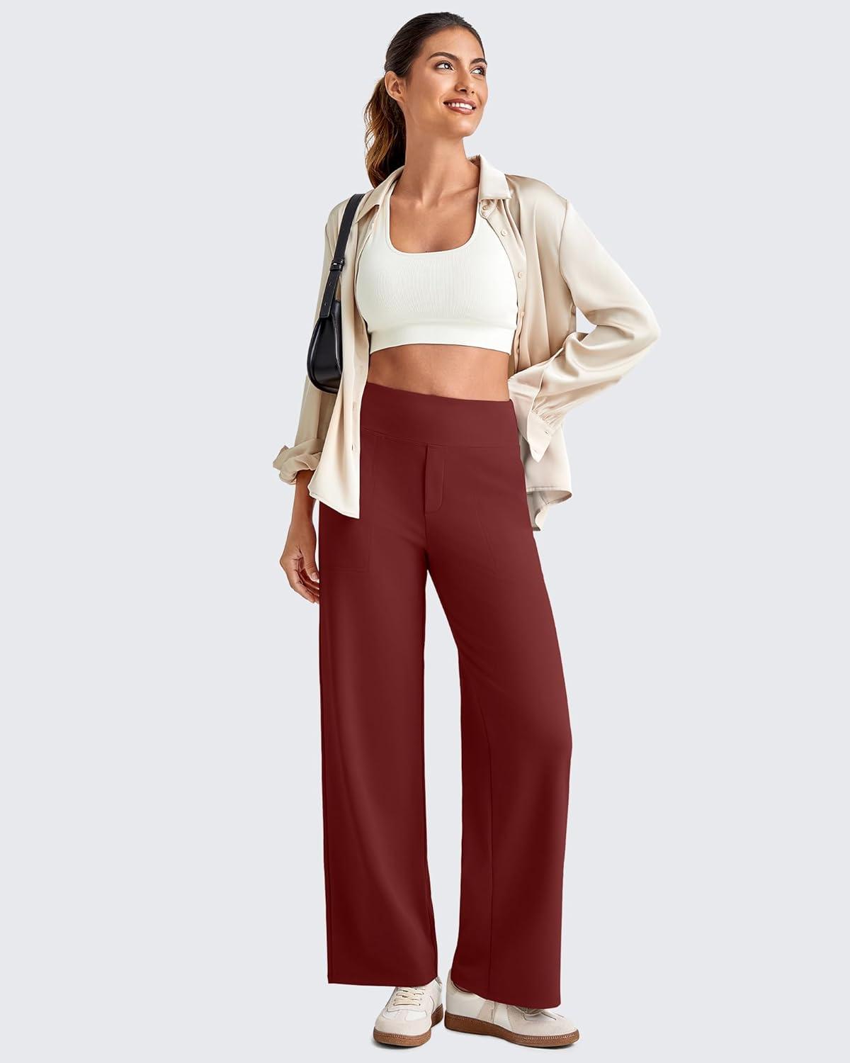 G4Free 25.5”/27.5”/29.5” Wide Leg Pants for Women 7/8 Length Yoga Dress Pants High Waist Stretch with Pockets Casual Work(Wine)