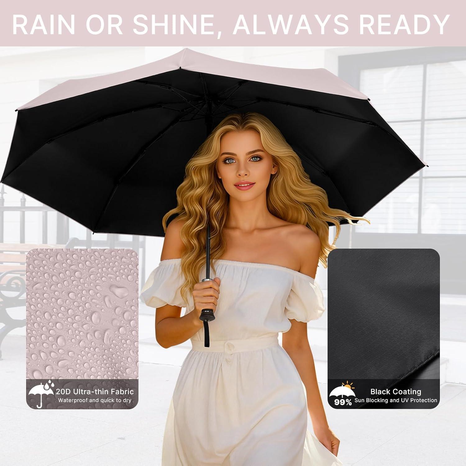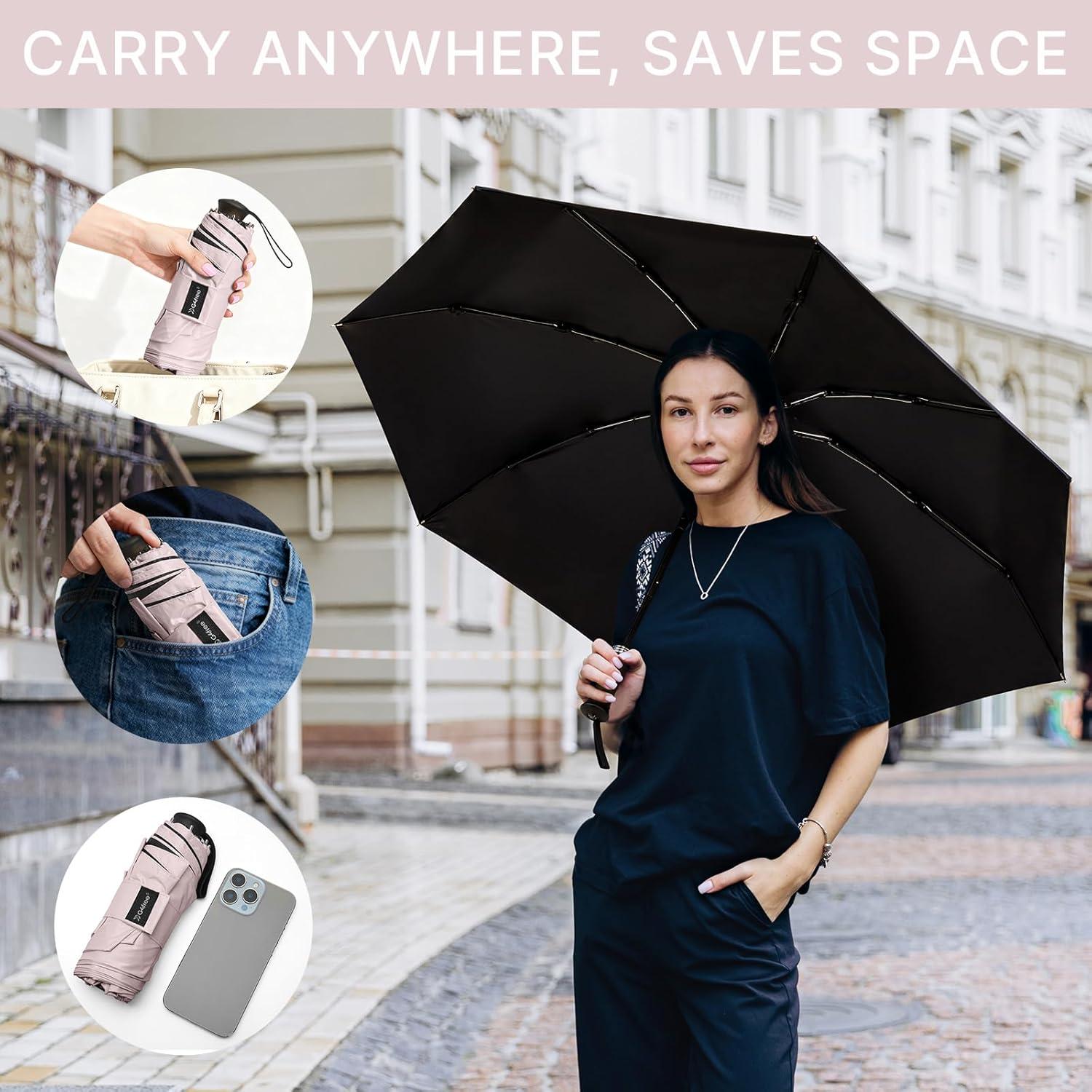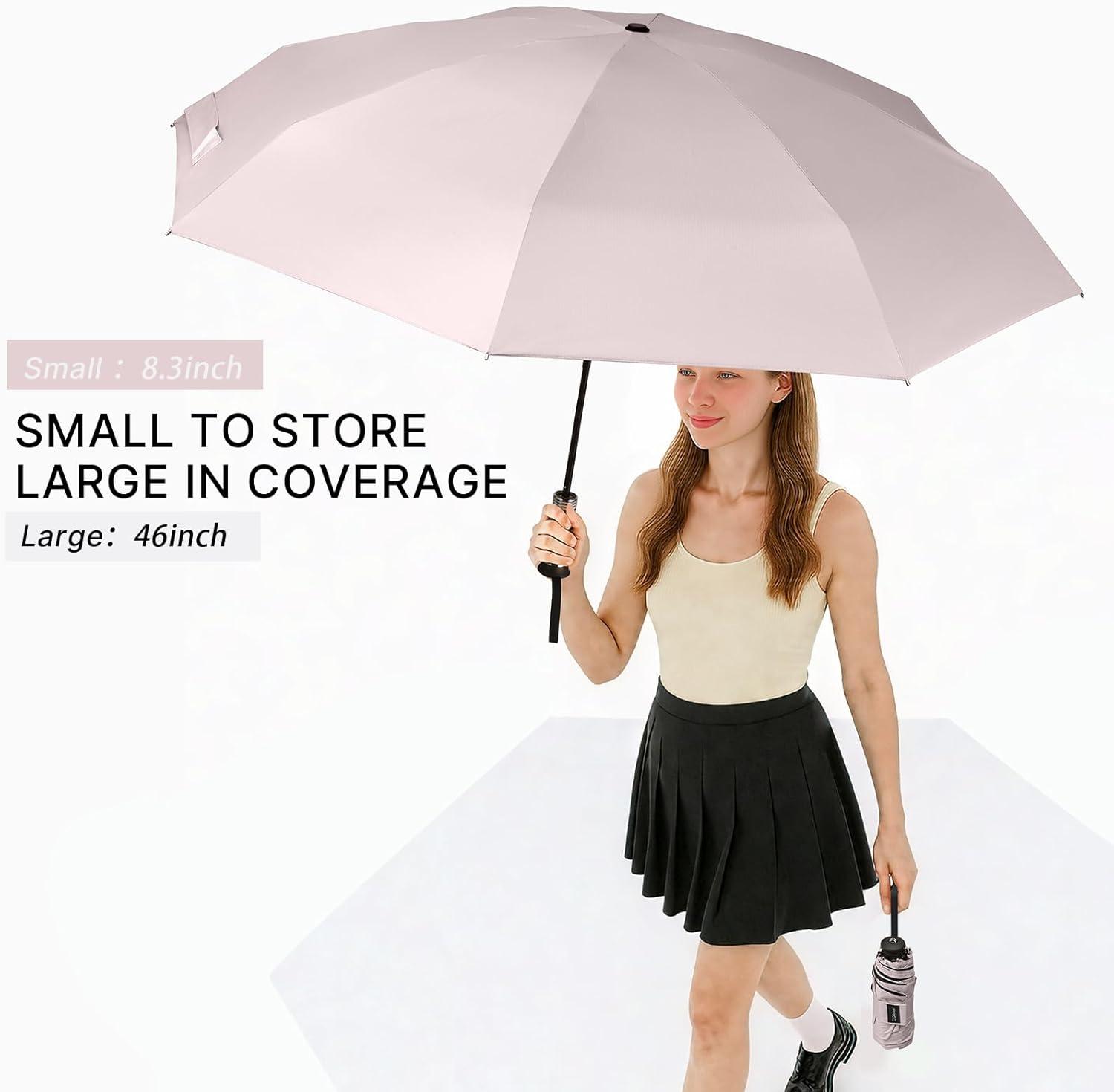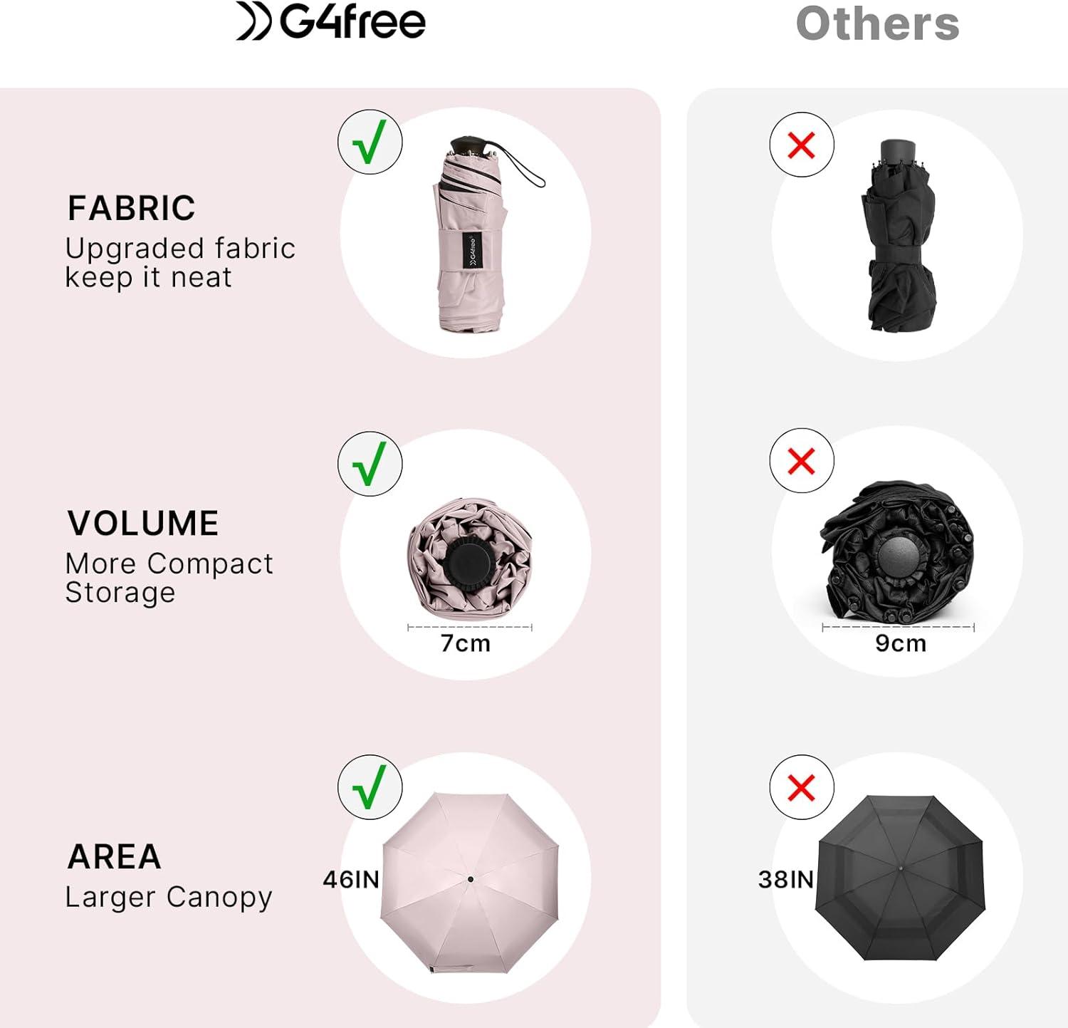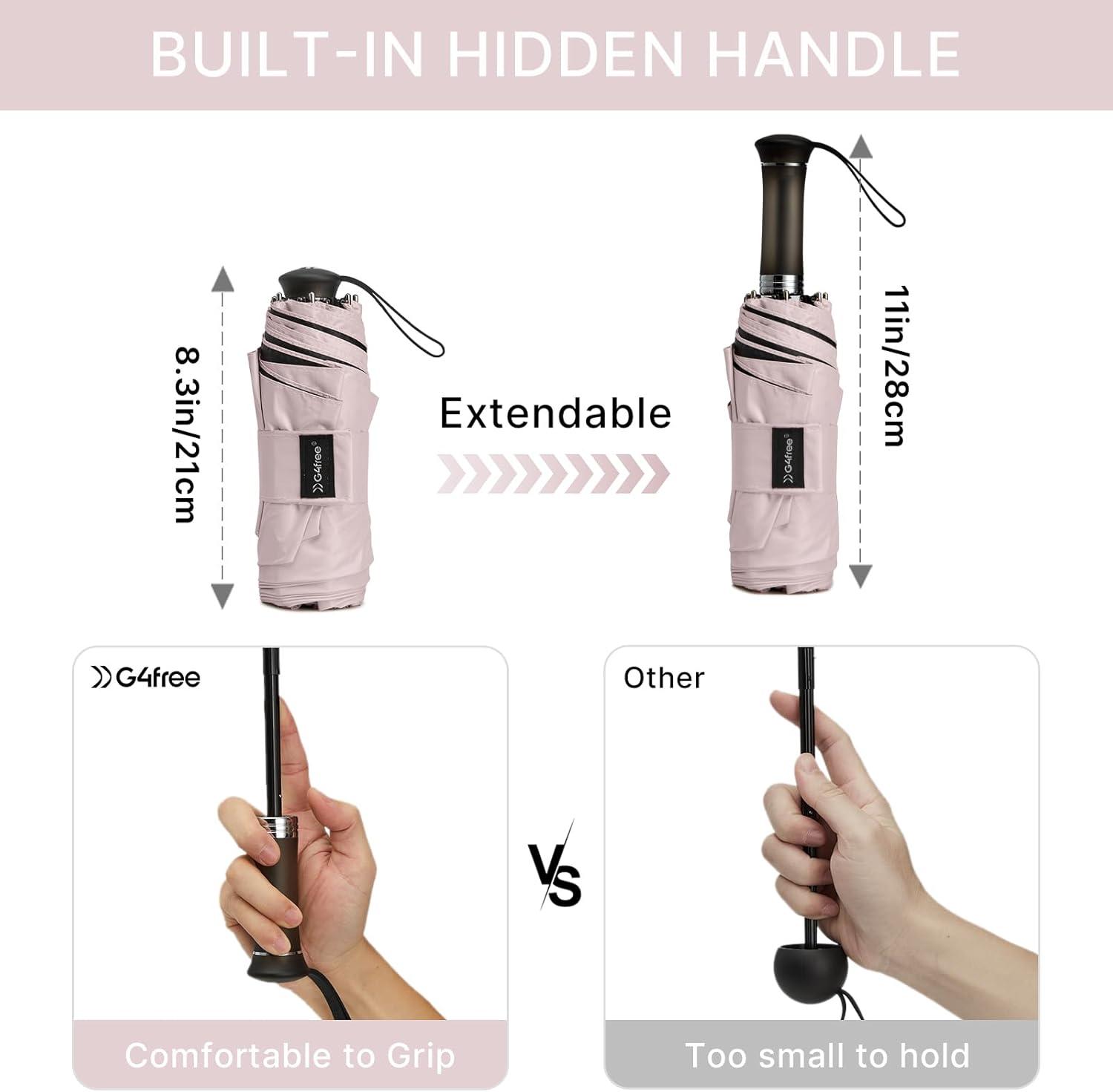 G4Free 46 Inch Mini Lightweight Travel Umbrella, Portable Super Slim Pocket Umbrella, Extendable Built-in Handle, UPF 50+ UV Protection, Compact size for Backpack & Purse(Sakura Pink)