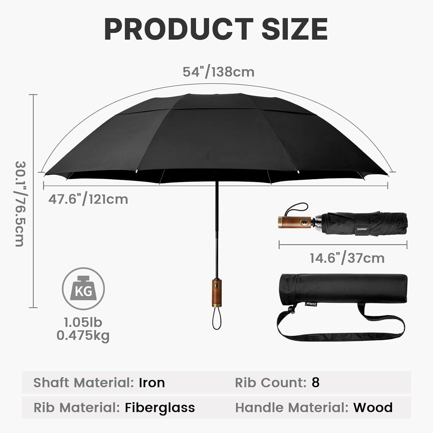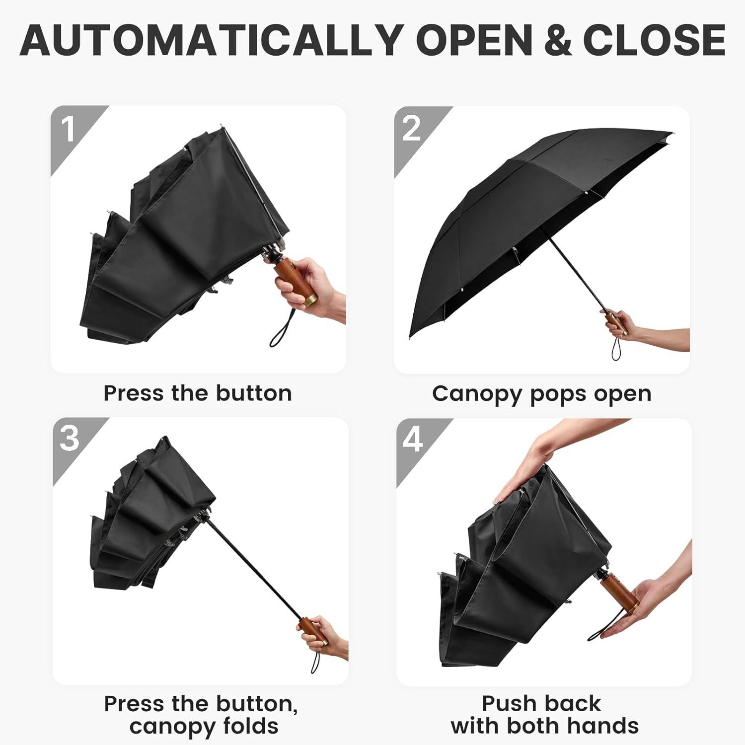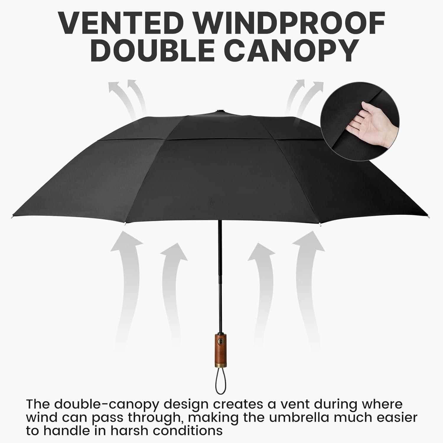 image:imageG4Free 54 Inch Inverted Windproof Umbrella with Wooden Handle Large Double Canopy Auto Open amp Close Golf Umbrella Portable amp Durable Rain Umbrella Fits Car amp BackpackBlack