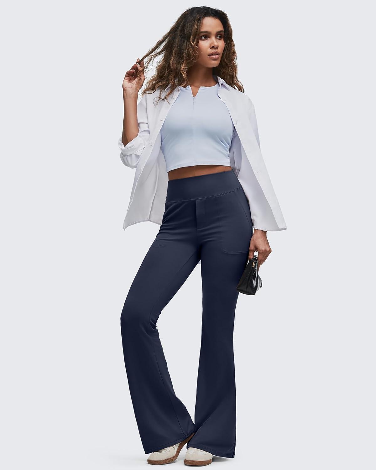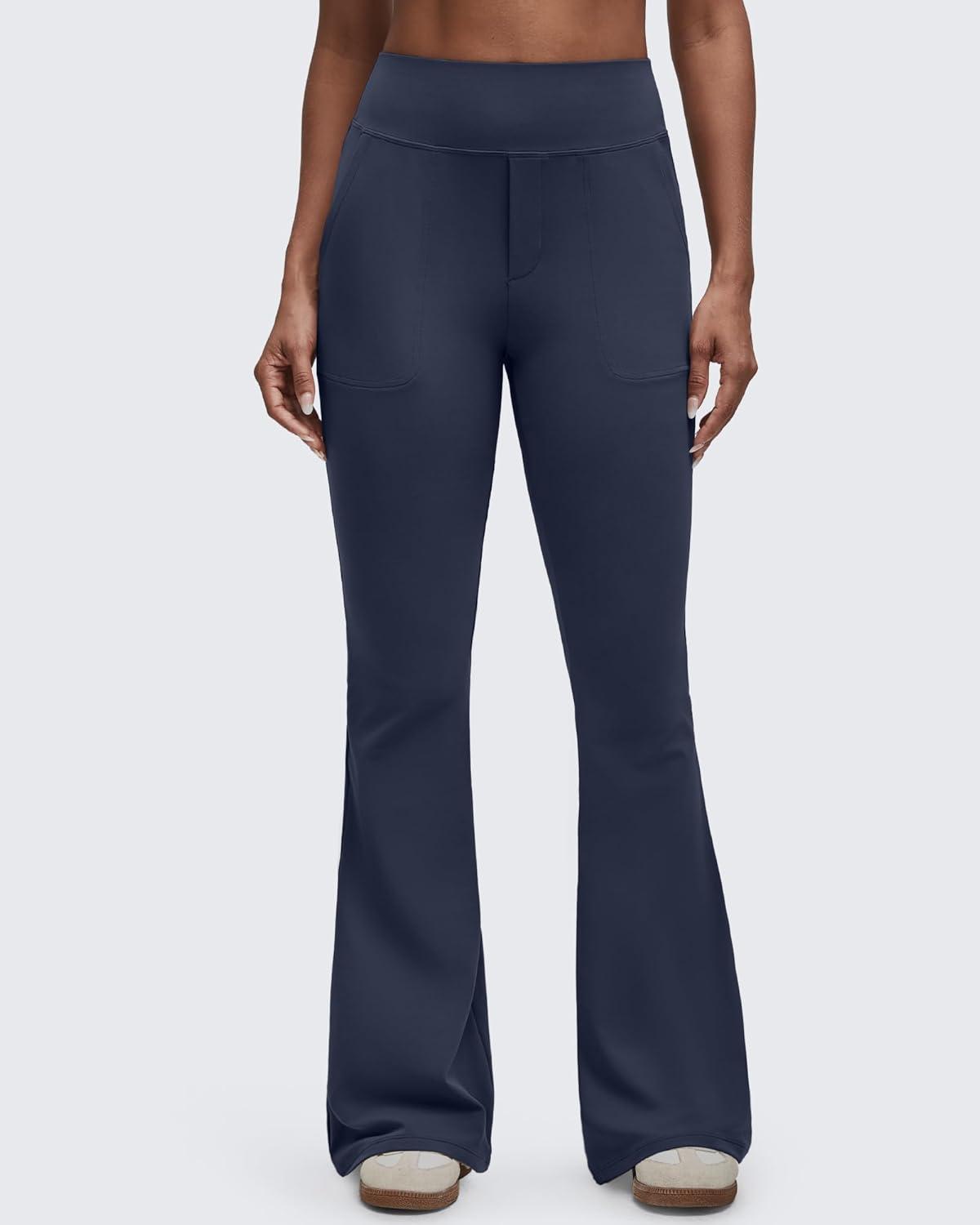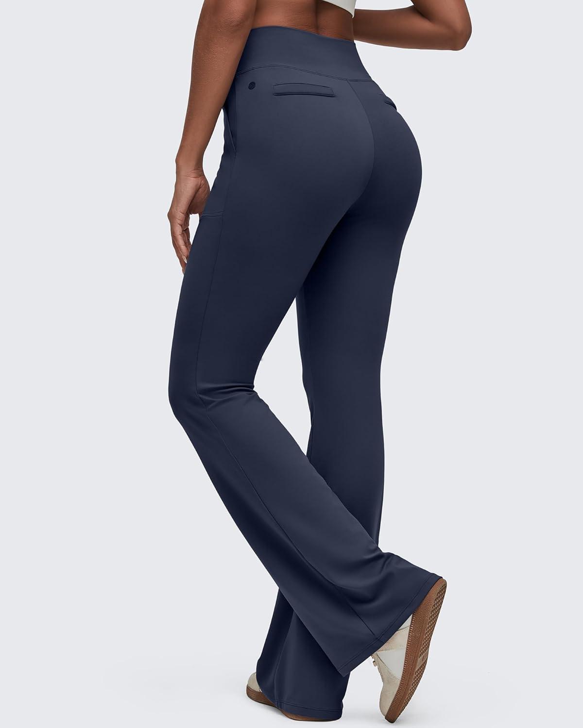 G4Free BareFeel Flare Yoga Pants Women High Waisted Bootcut Leggings with Pockets Dress Work Pant Petite/Regular/Tall(Dark Navy)