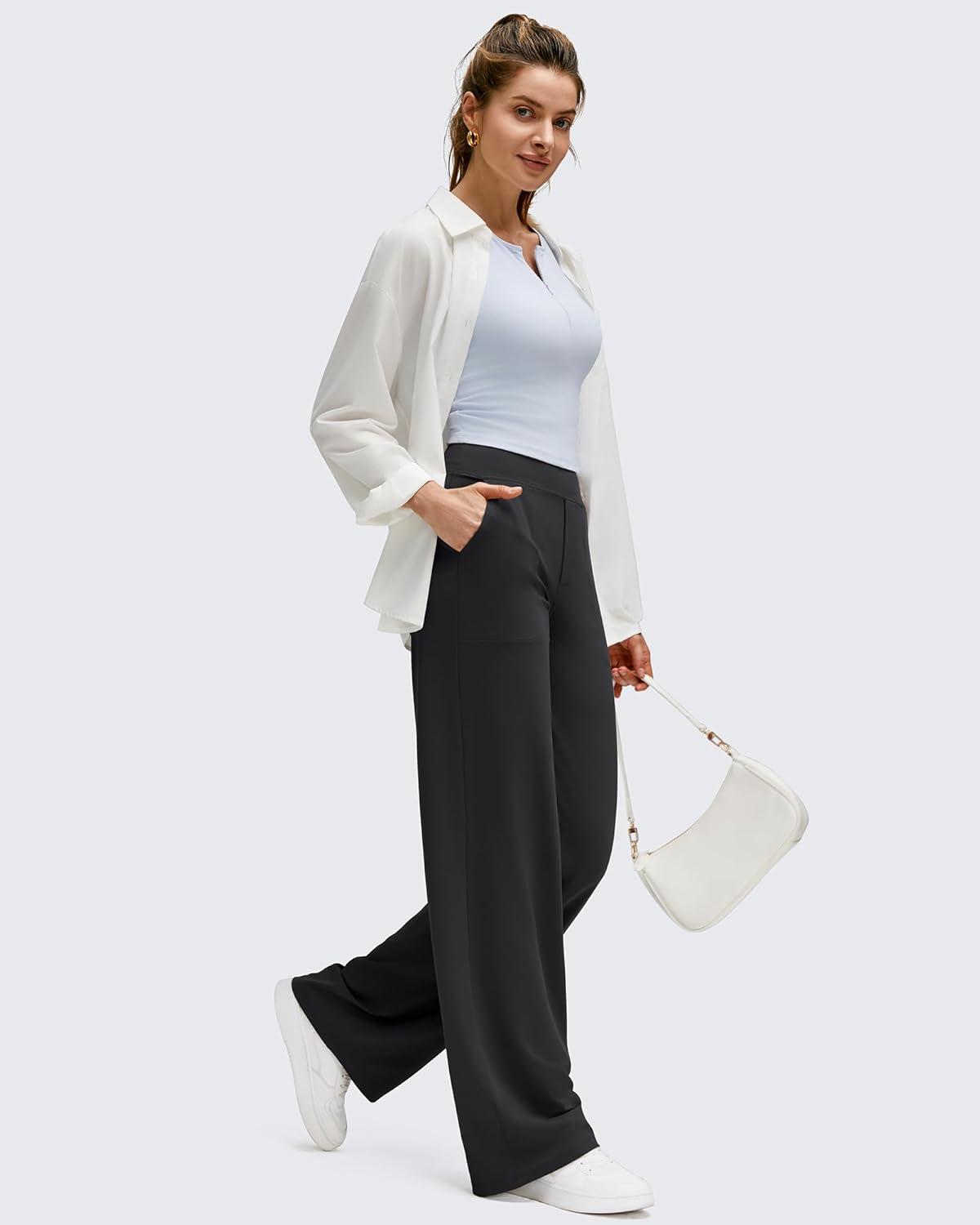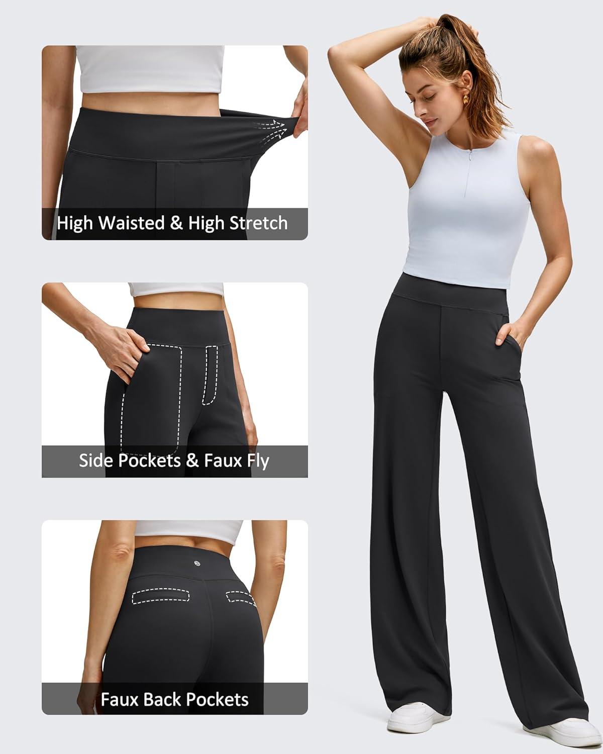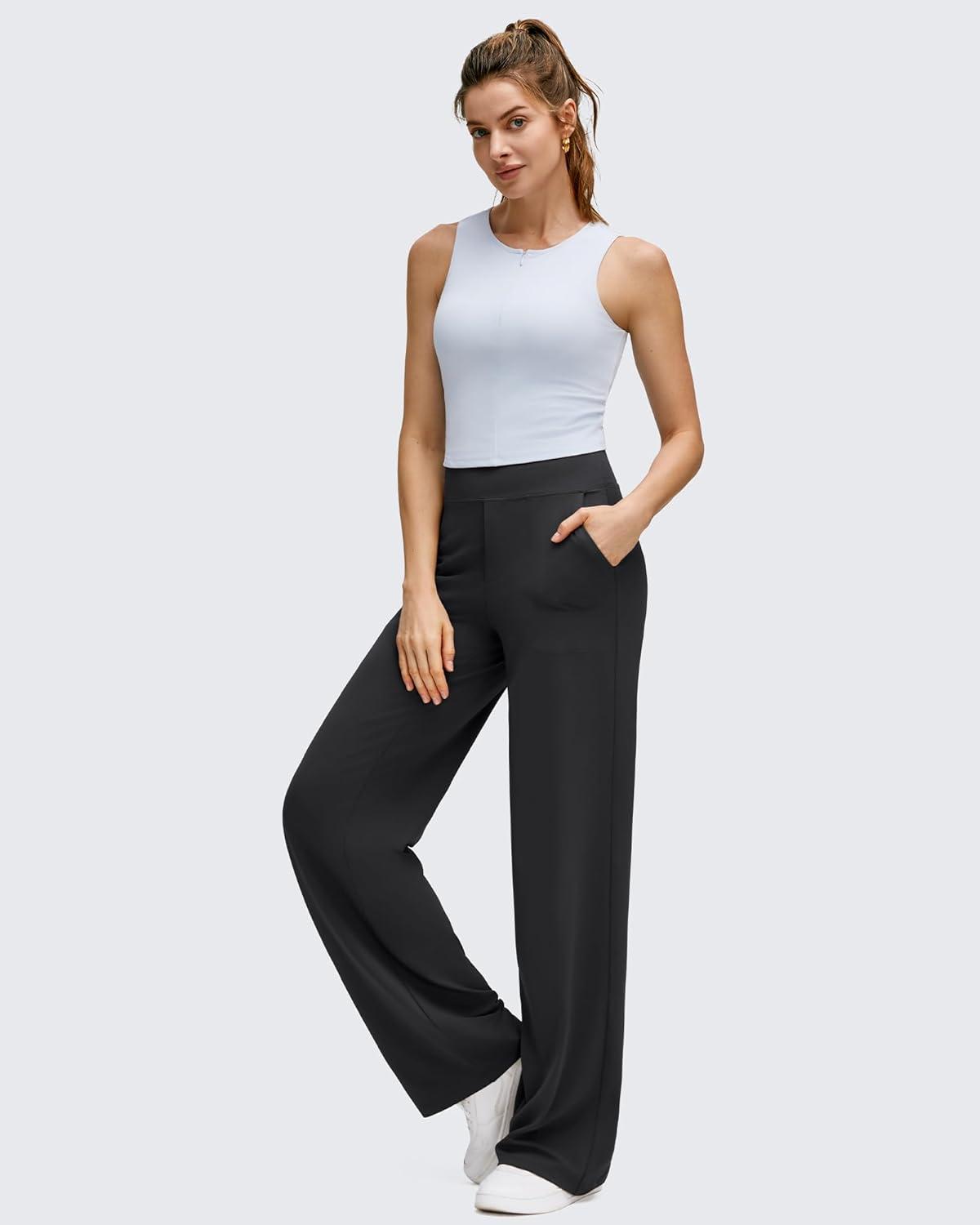G4Free BareFeel High Stretch Wide Leg Pants for Women Soft Comfy Casual Yoga Pants with Pockets Petite/Regular/Tall(Black)