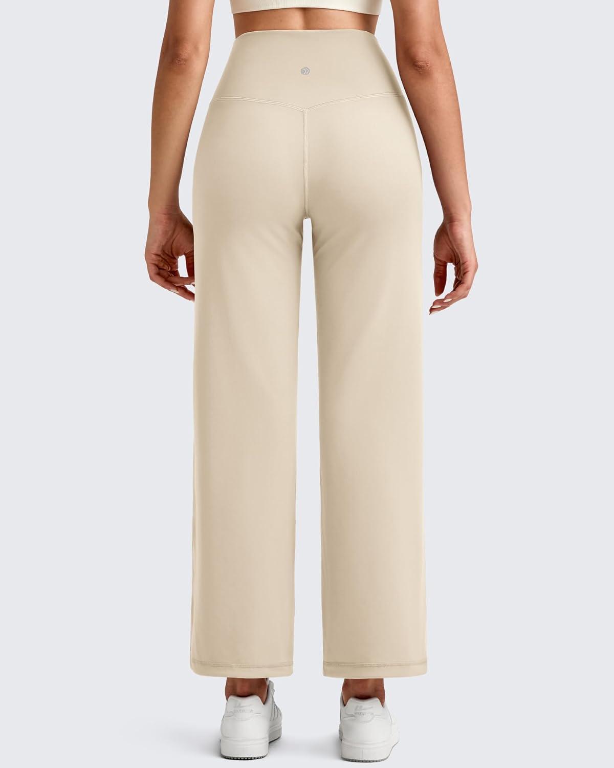 G4Free BareFeel High Stretch Wide Leg Yoga Pants for Women Soft High Waist Ankle Length Casual Pants with Pockets 25″/27″/29″(Light Khaki)