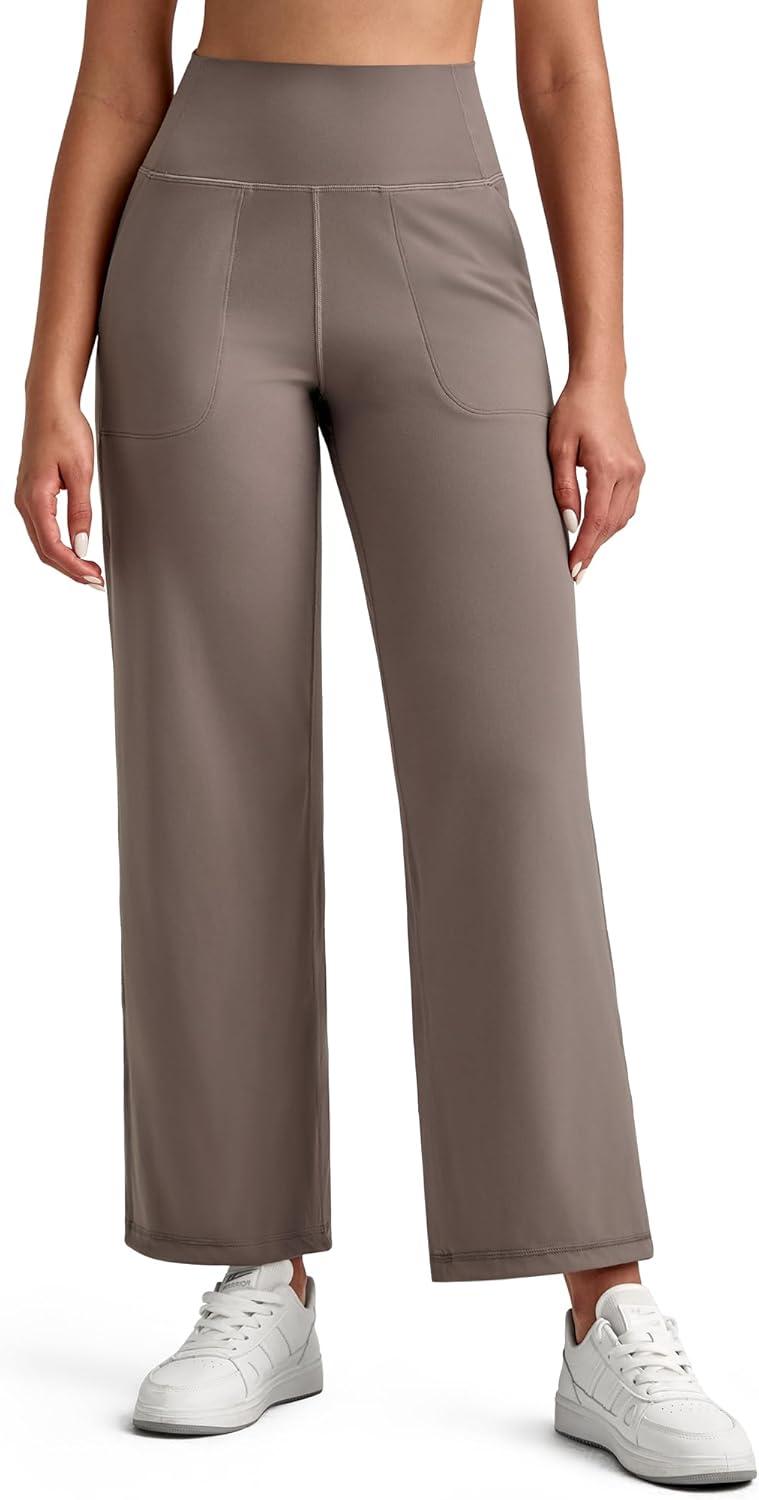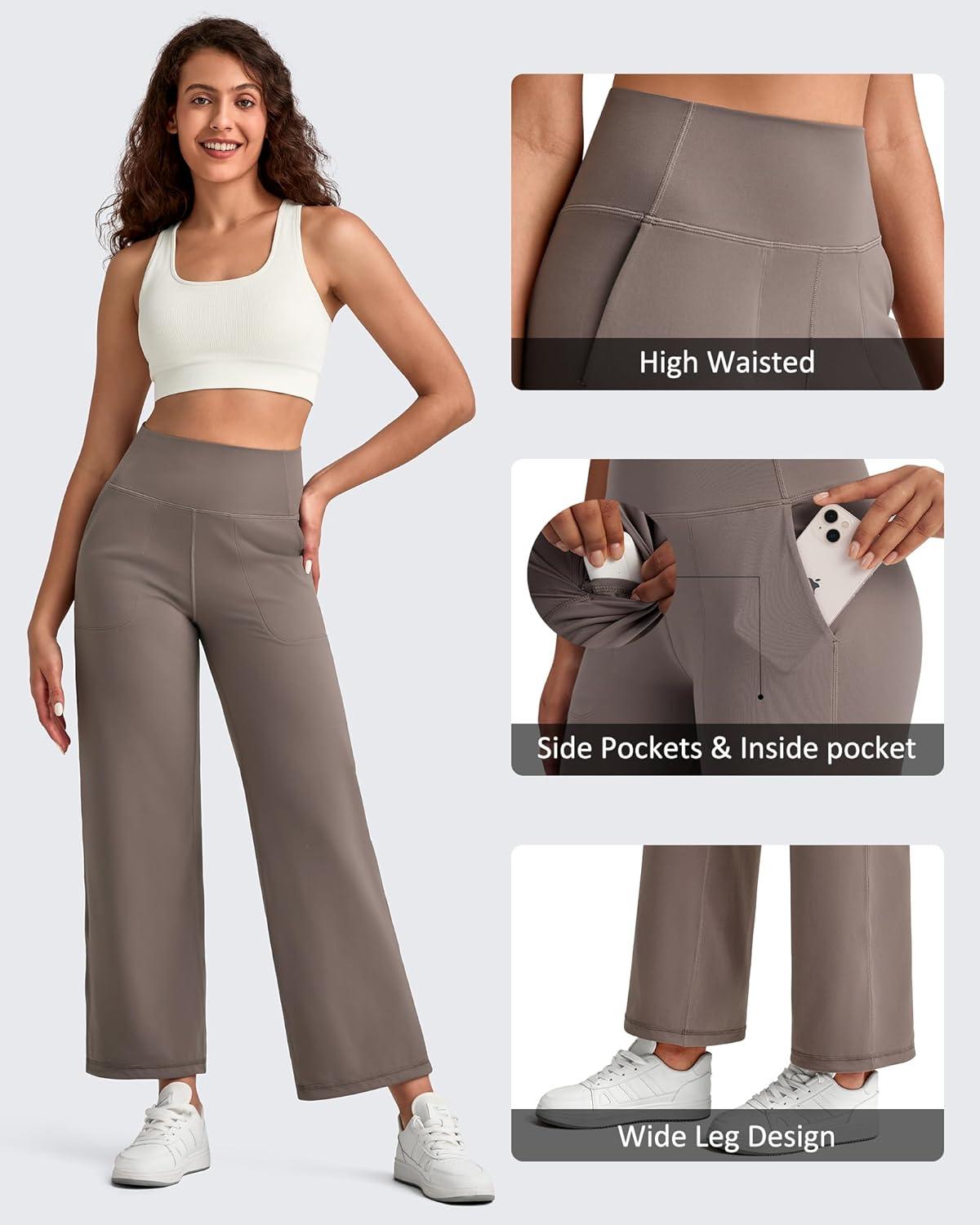 imageG4Free BareFeel High Stretch Wide Leg Yoga Pants for Women Soft High Waist Ankle Length Casual Pants with Pockets 25quot27quot29quotTaupe