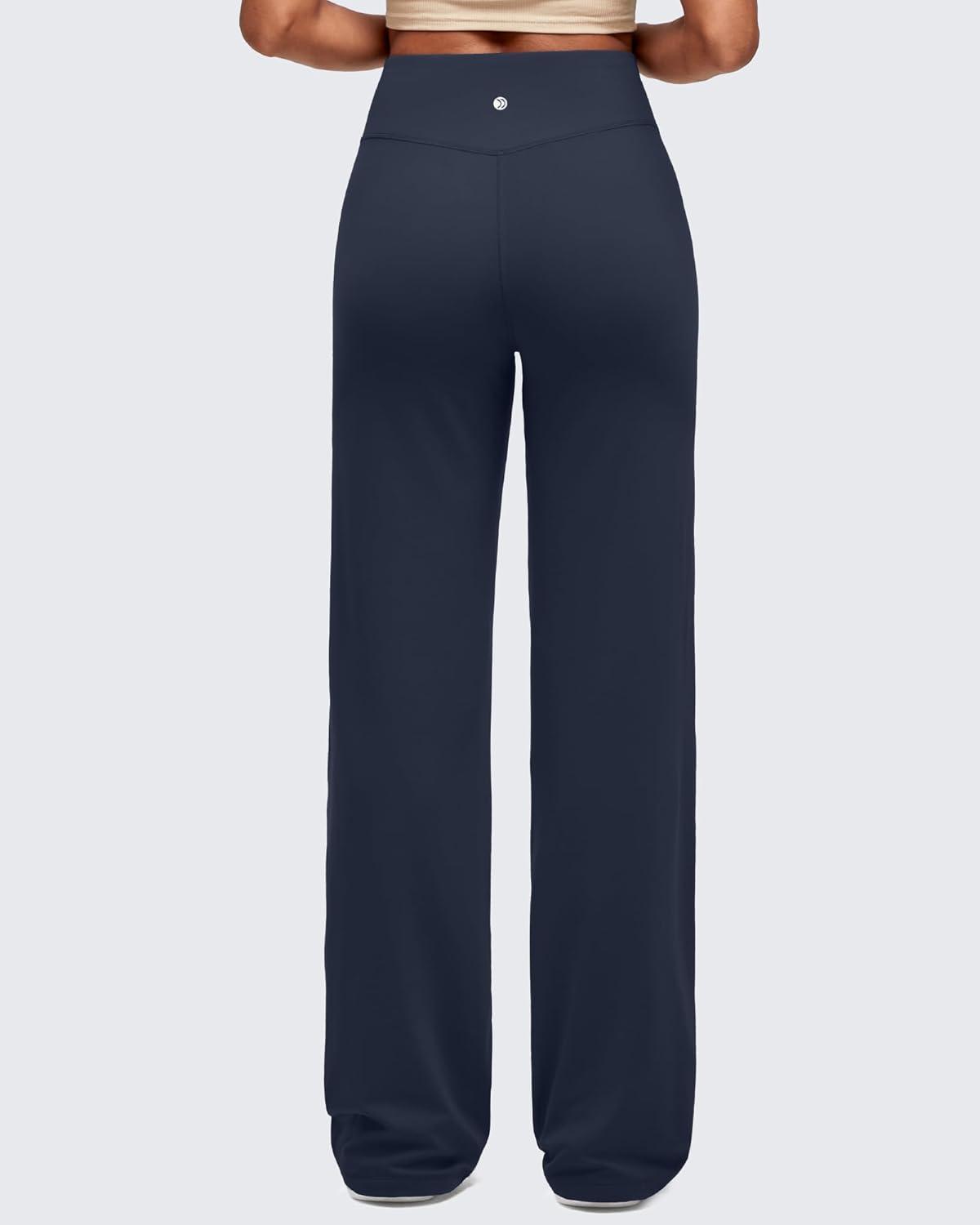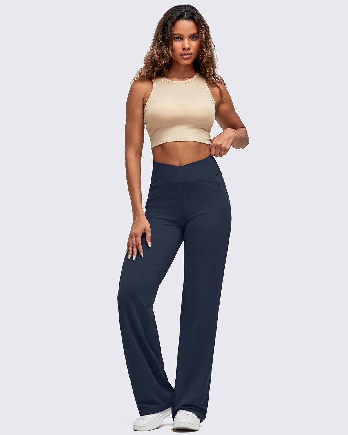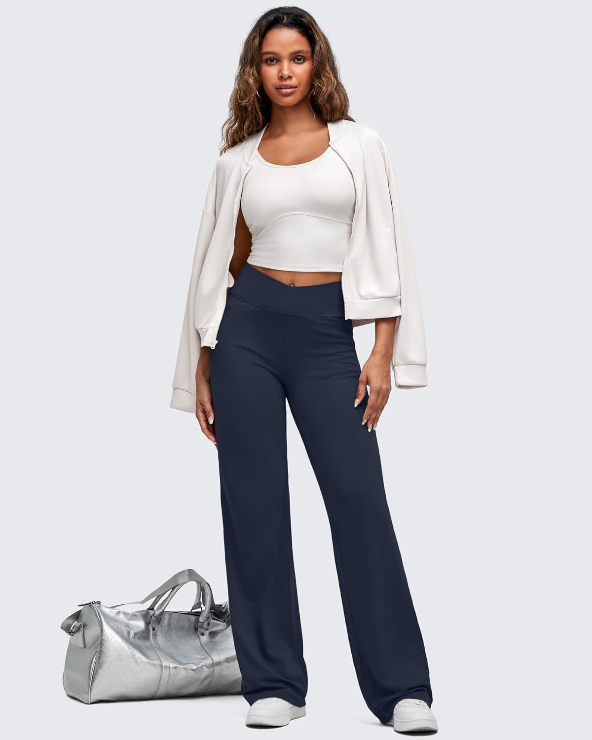 imageG4Free BareFeel High Stretch Women Wide Leg Yoga Pants Cross Waist Casual Trousers with Zipper Pockets 29quot31quot33quotDark Navy