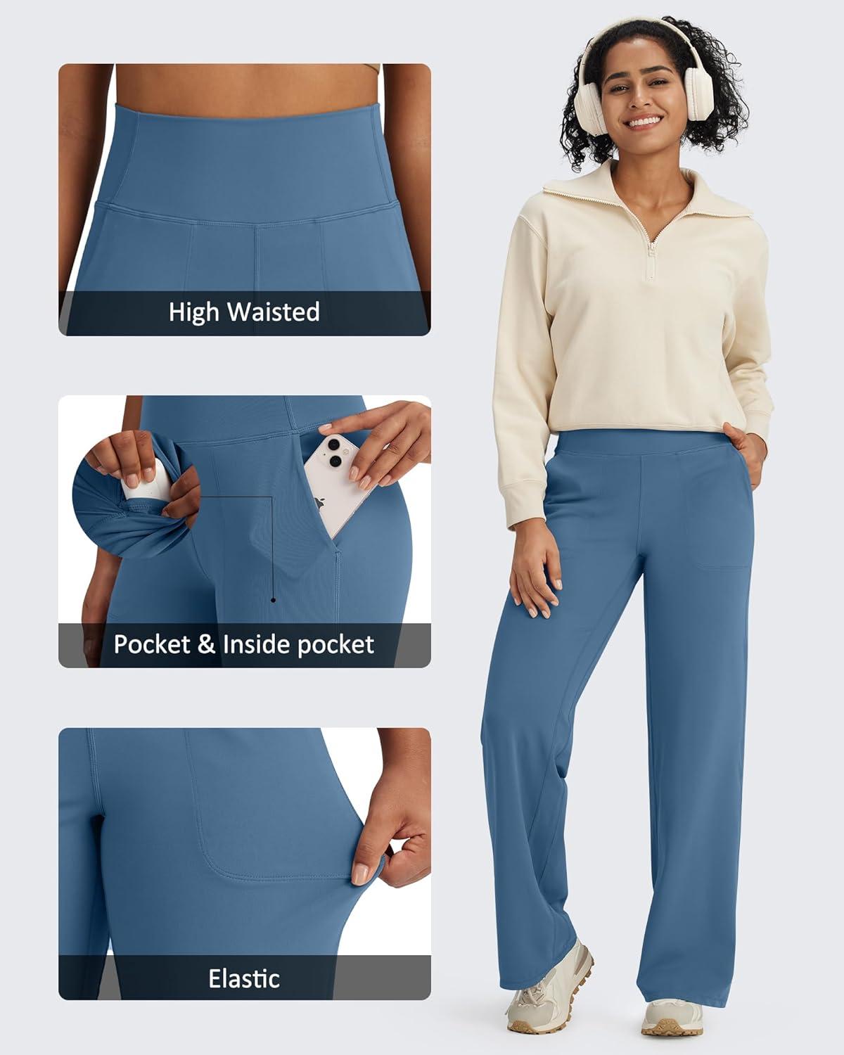 G4Free BareFeel High Stretch Yoga Pants Women Soft High Waisted Casual Wide Leg Pants with Pockets(Blue Gray)
