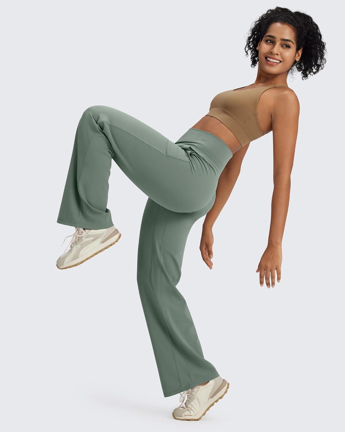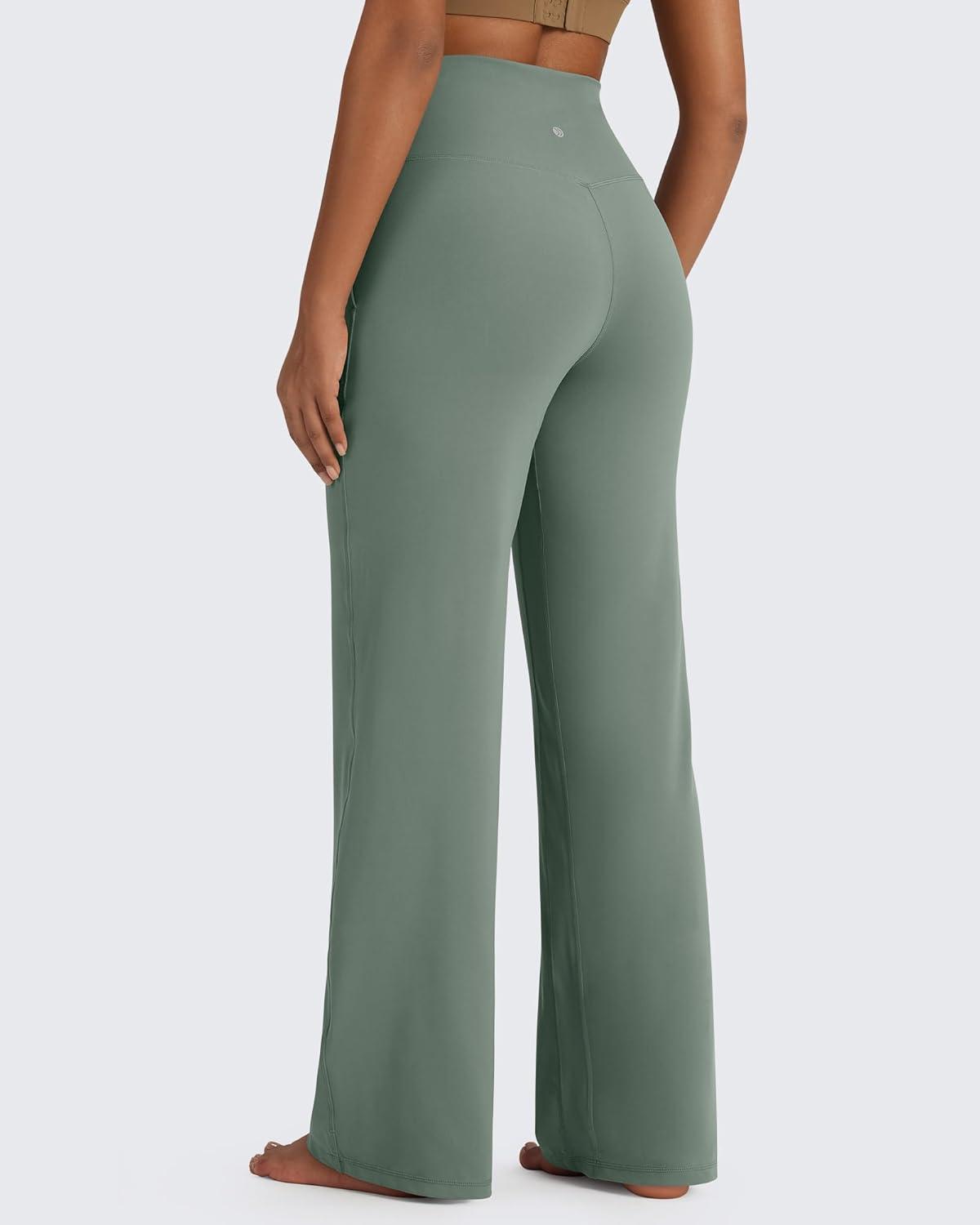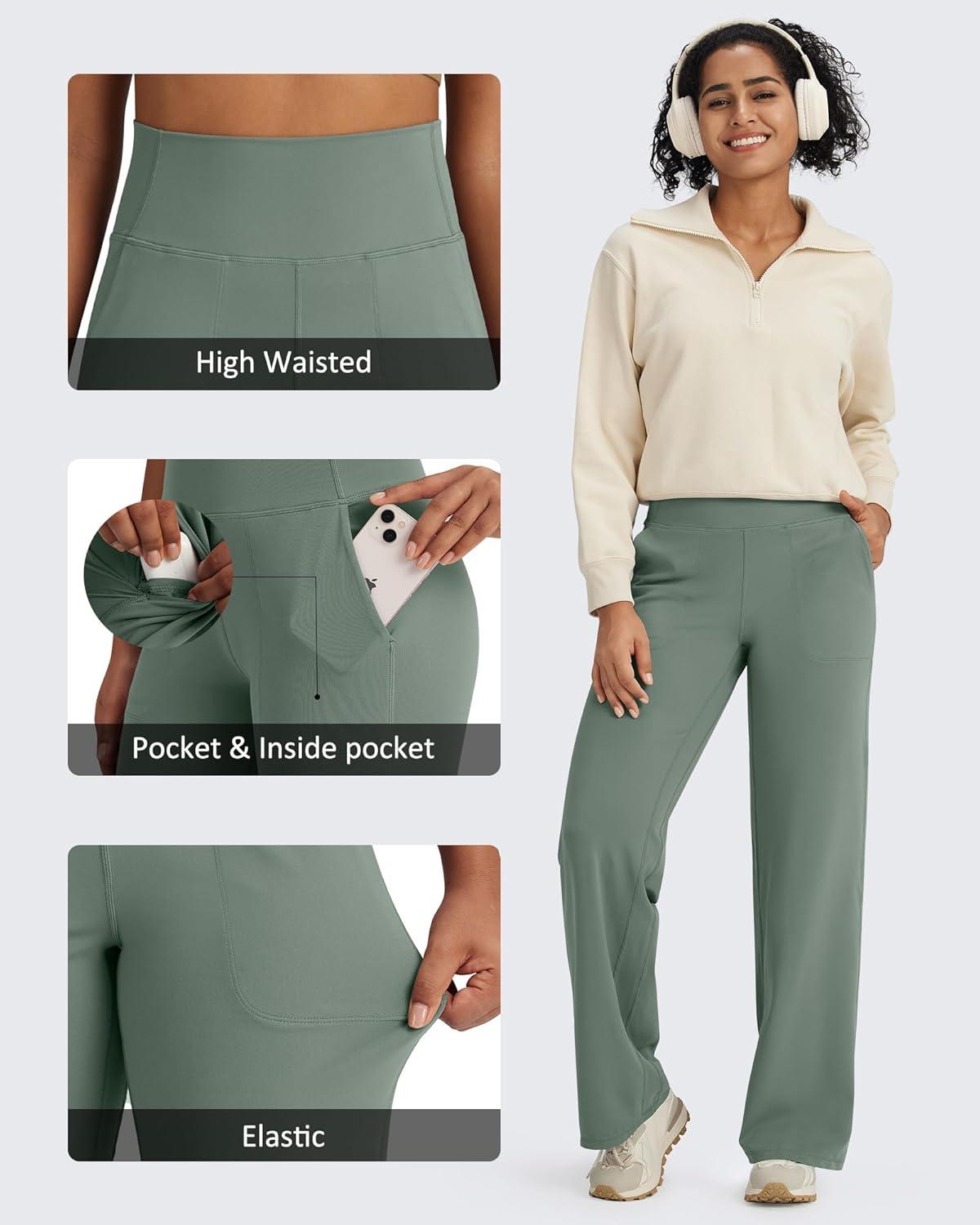 G4Free BareFeel High Stretch Yoga Pants Women Soft High Waisted Casual Wide Leg Pants with Pockets(Gray Sage)