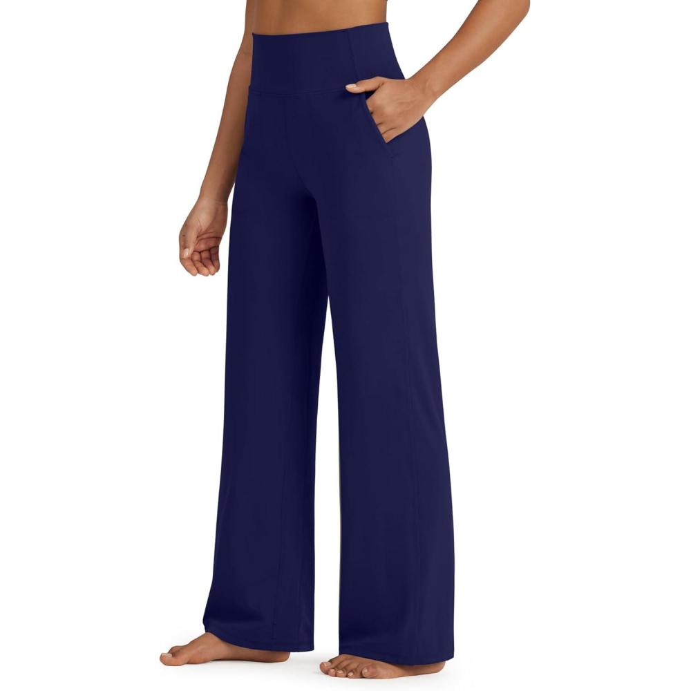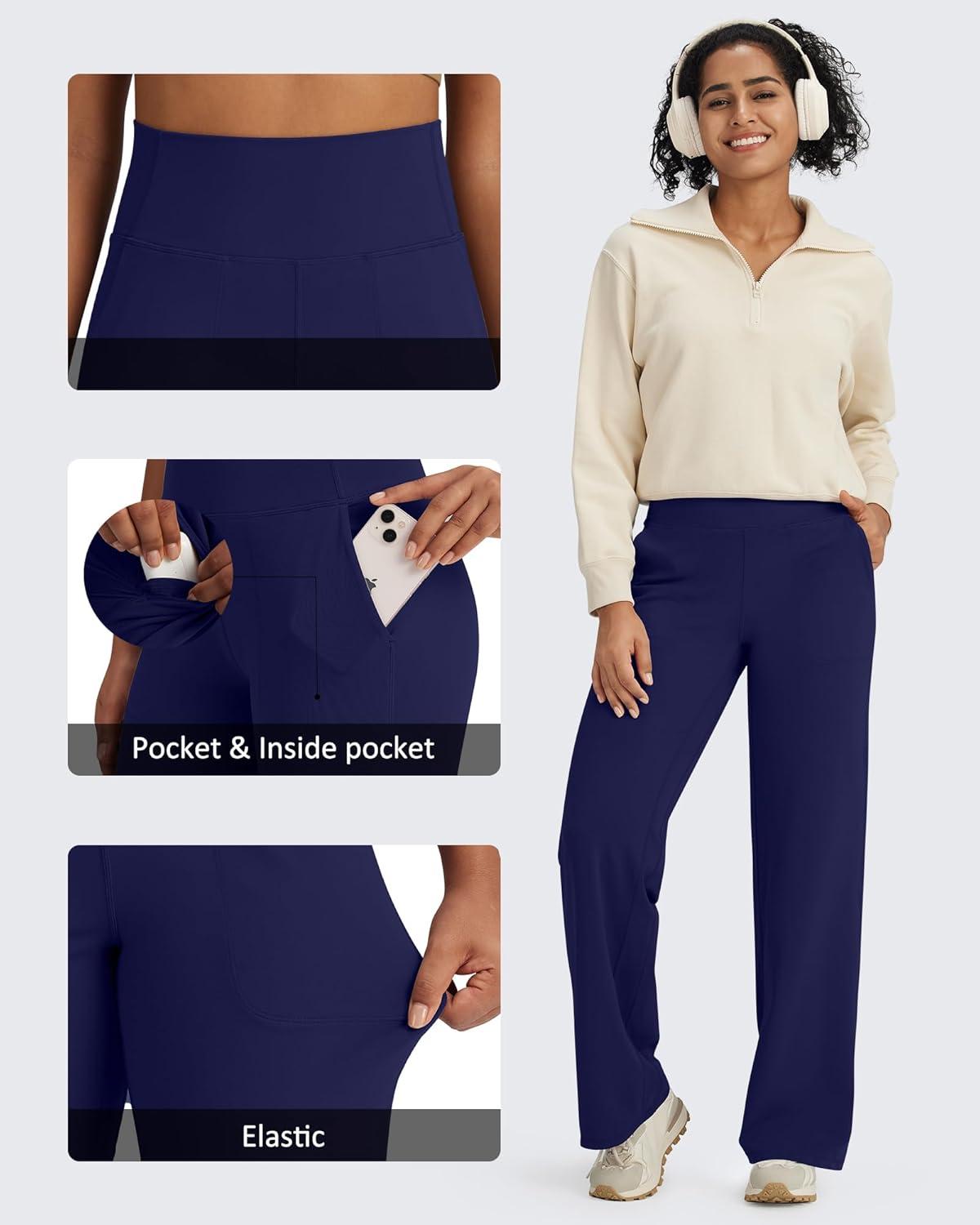 G4Free BareFeel High Stretch Yoga Pants Women Soft High Waisted Casual Wide Leg Pants with Pockets(Royal Blue)