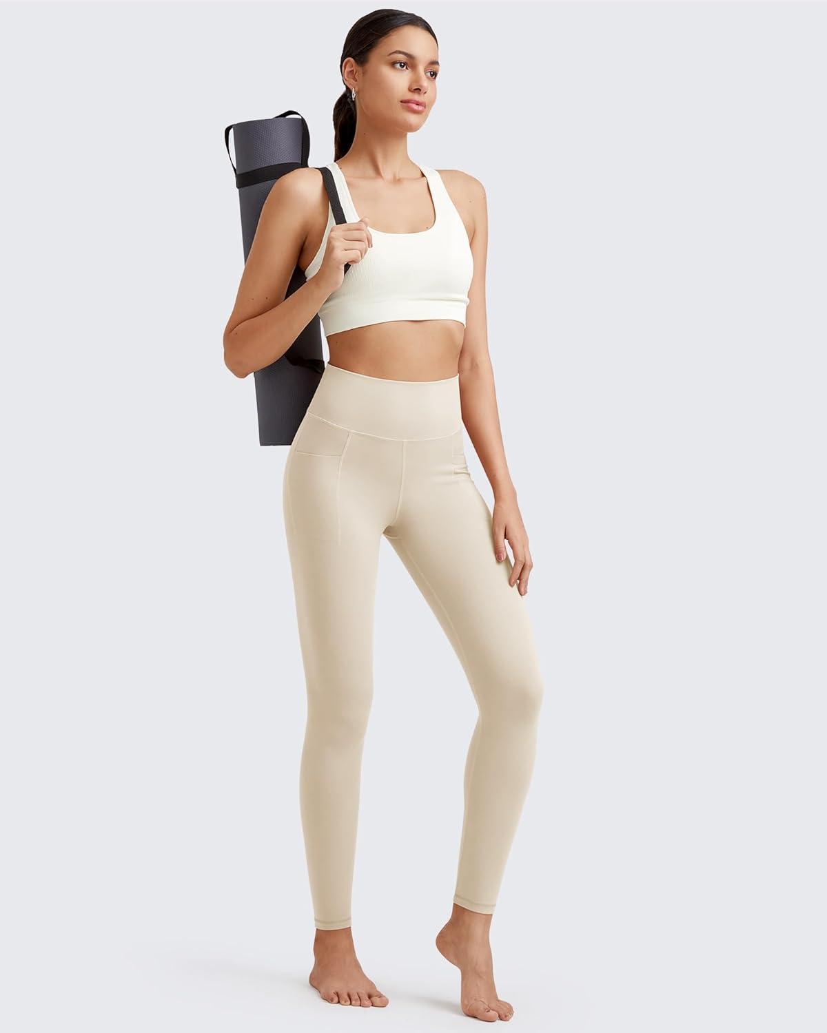imageG4Free BareFeel High Waisted ClassicSeamless Lounge Leggings Soft Workout Yoga Pants for Women with Pockets 20quot25quot27quot29quotLight Khaki