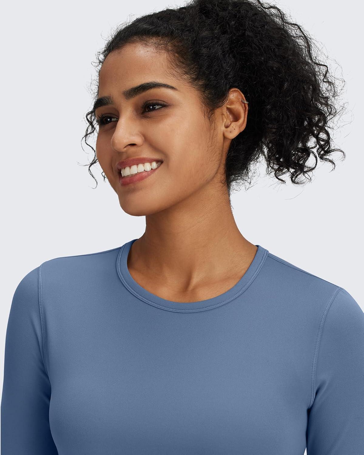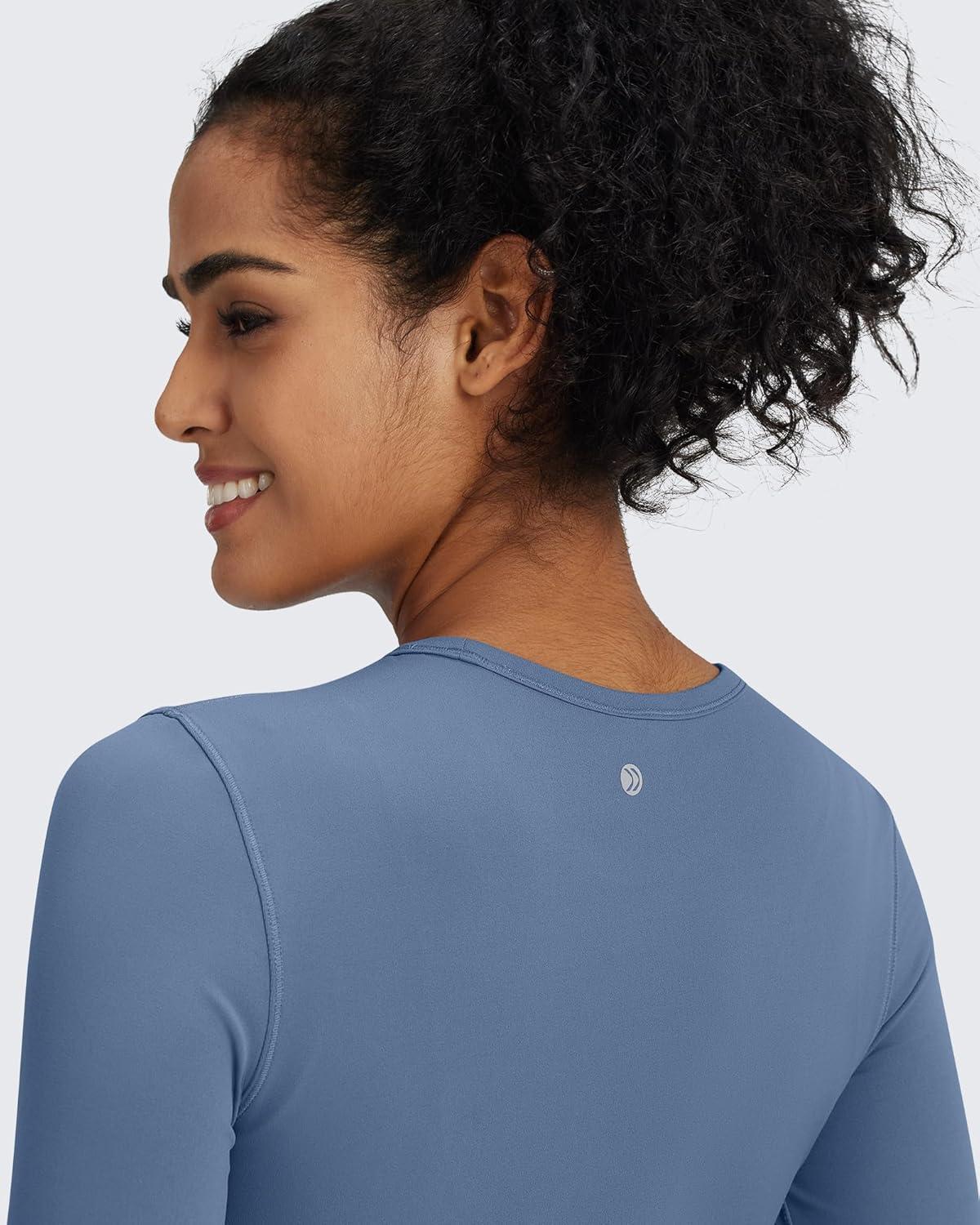 G4Free BareFeel Long Sleeve Workout Tops for Women Slim Athletic Gym Yoga Shirt Cropped Basic Tight Shirt(Blue Gray)