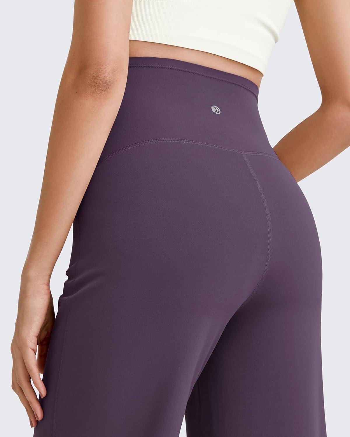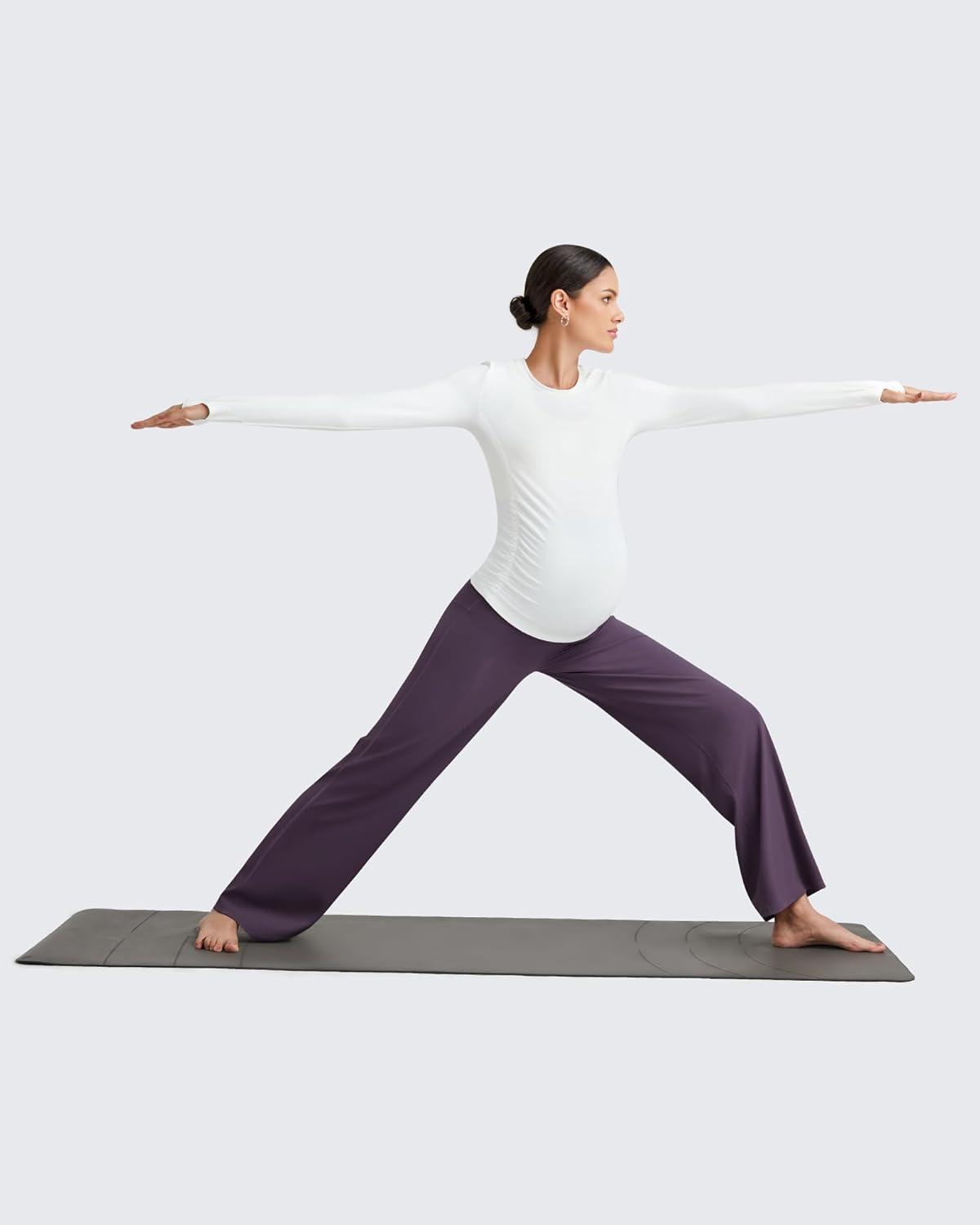 G4Free BareFeel Maternity Dress Yoga Pants Over The Belly Stretchy Work Slack Pregnancy Wide Leg Lounge Trousers(Grape Purple)