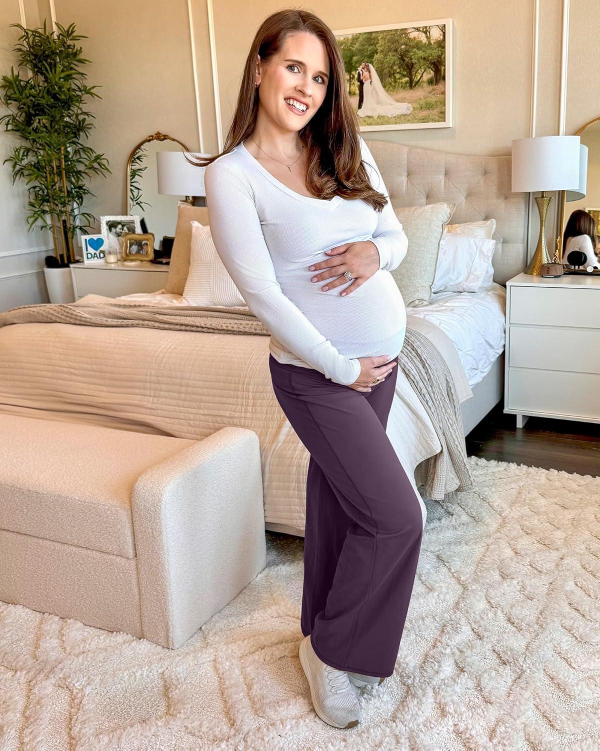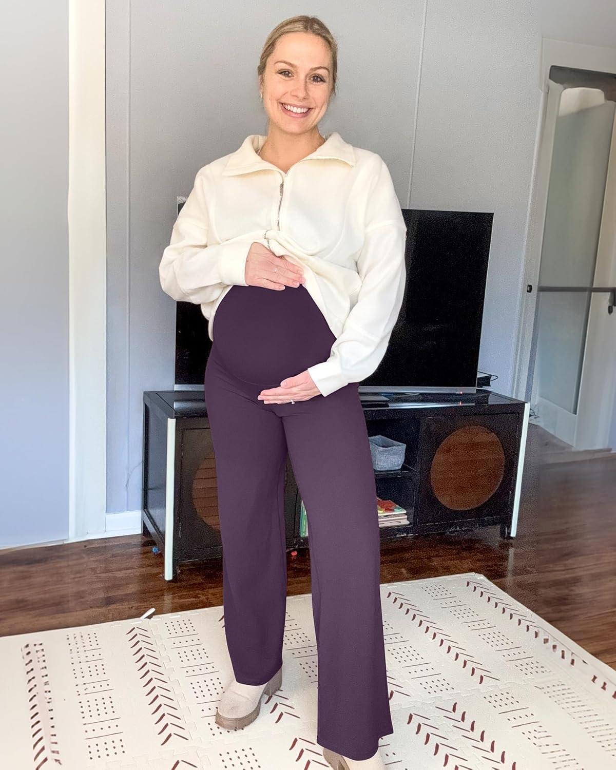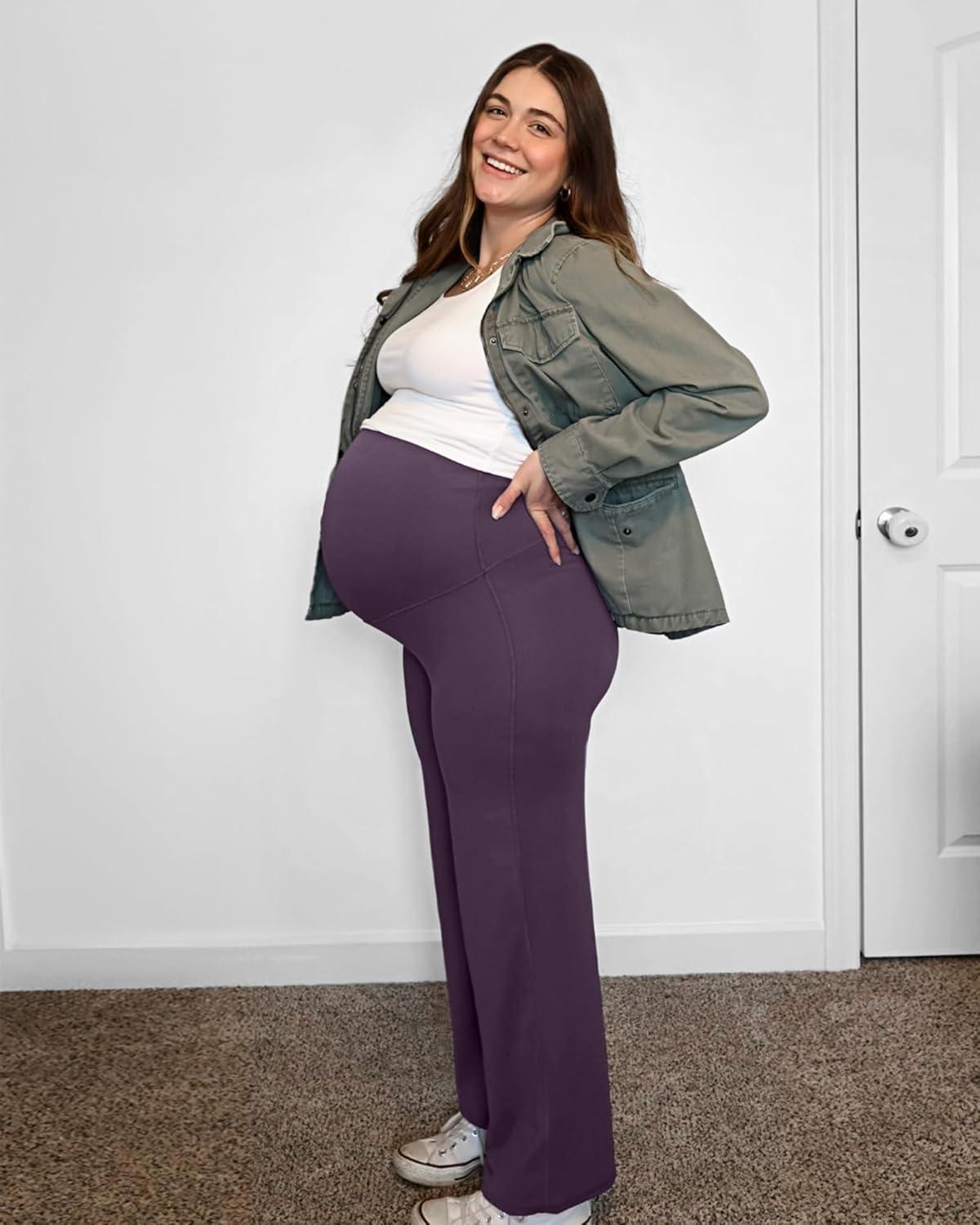 imageG4Free BareFeel Maternity Dress Yoga Pants Over The Belly Stretchy Work Slack Pregnancy Wide Leg Lounge TrousersGrape Purple