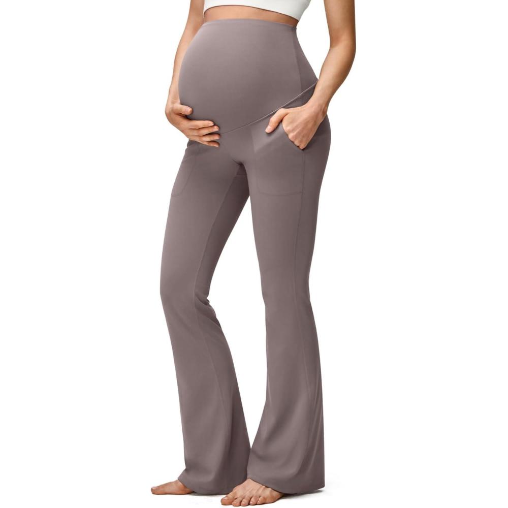 imageG4Free BareFeel Maternity Flare Leggings with Pockets Over The Belly Yoga Pregnancy Casual Dress Pants for WorkTaupe