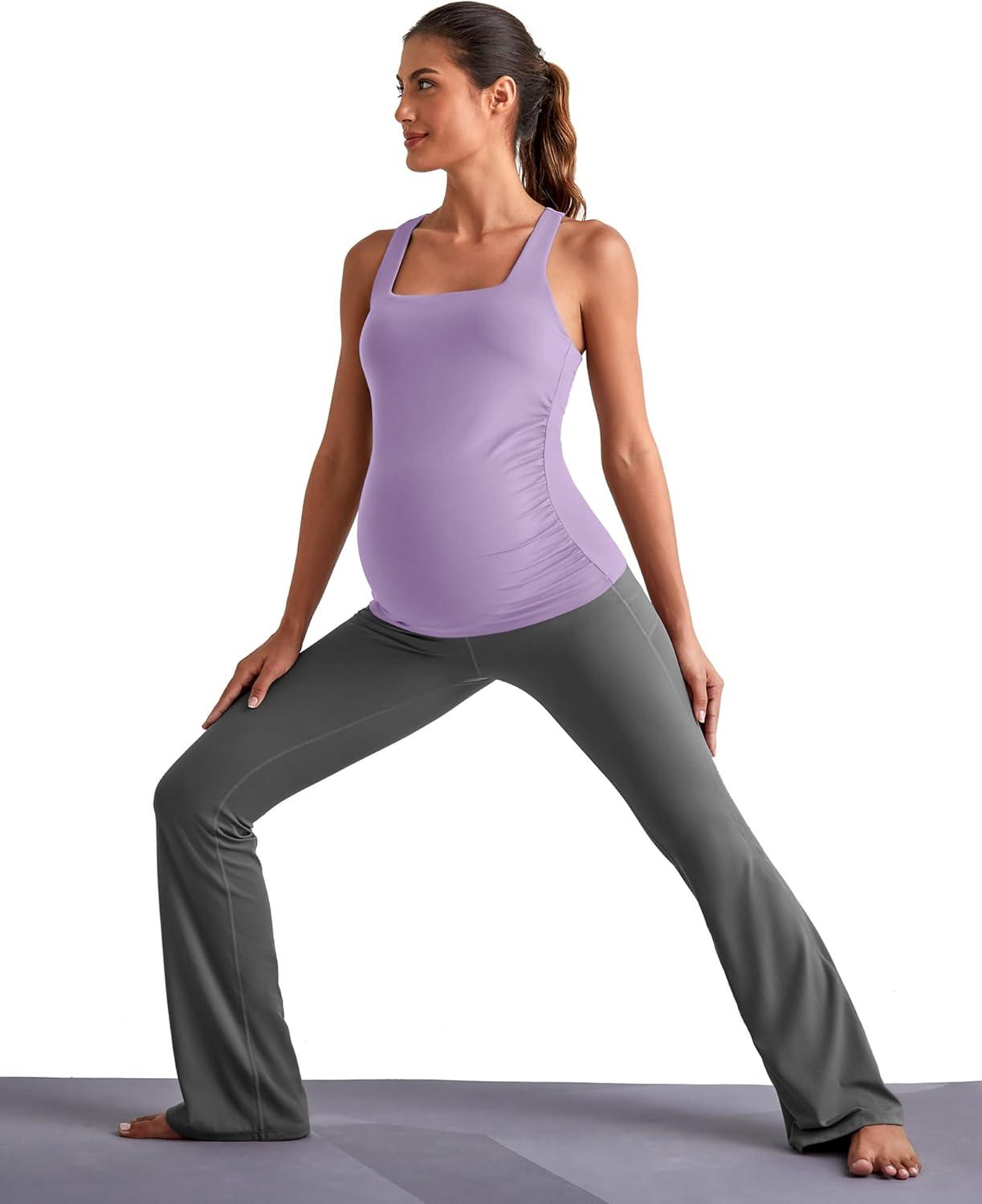imageG4Free BareFeel Maternity Racerback Tank Tops with Built in Bra Ruched Sleeveless Square Neck Pregnancy Yoga Workout ShirtsLight Purple
