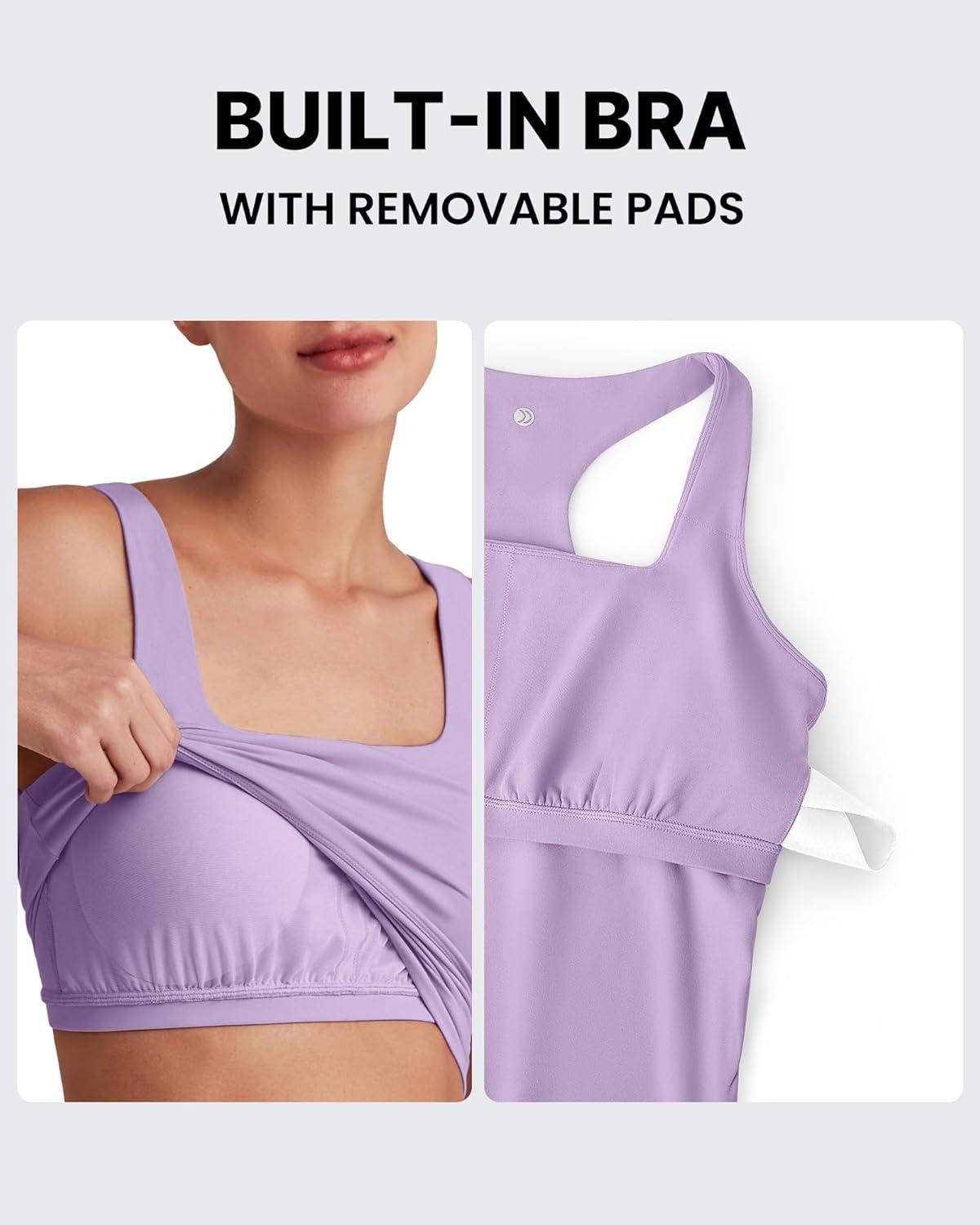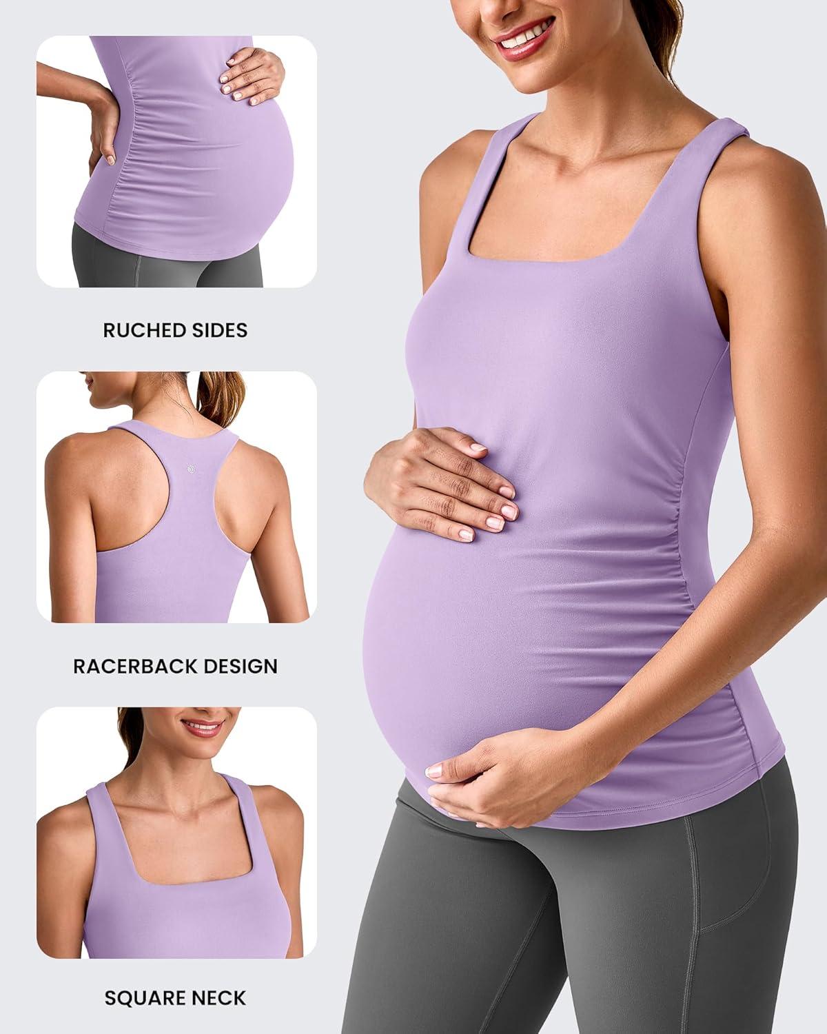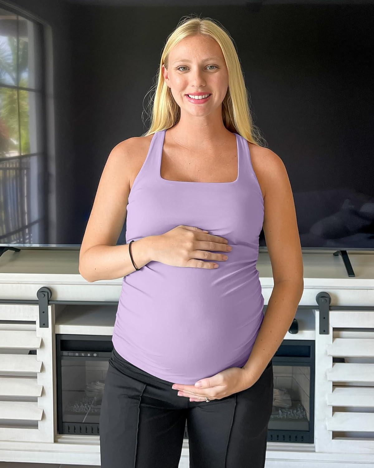 G4Free BareFeel Maternity Racerback Tank Tops with Built in Bra Ruched Sleeveless Square Neck Pregnancy Yoga Workout Shirts(Light Purple)
