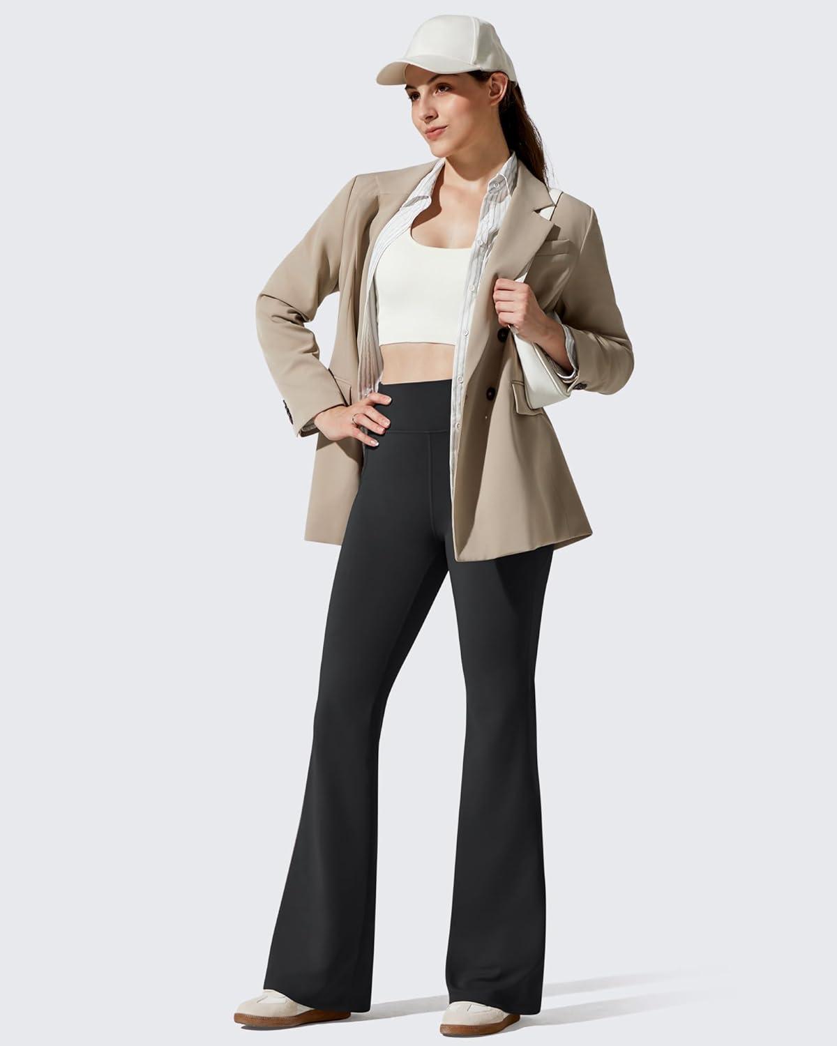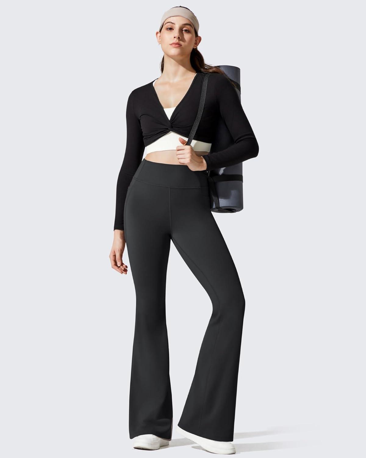 G4Free Barefeel Women's Fleece Lined Flare Workout Yoga Pants Winter Thermal High Waist Leggings Causal with Pockets(Black)