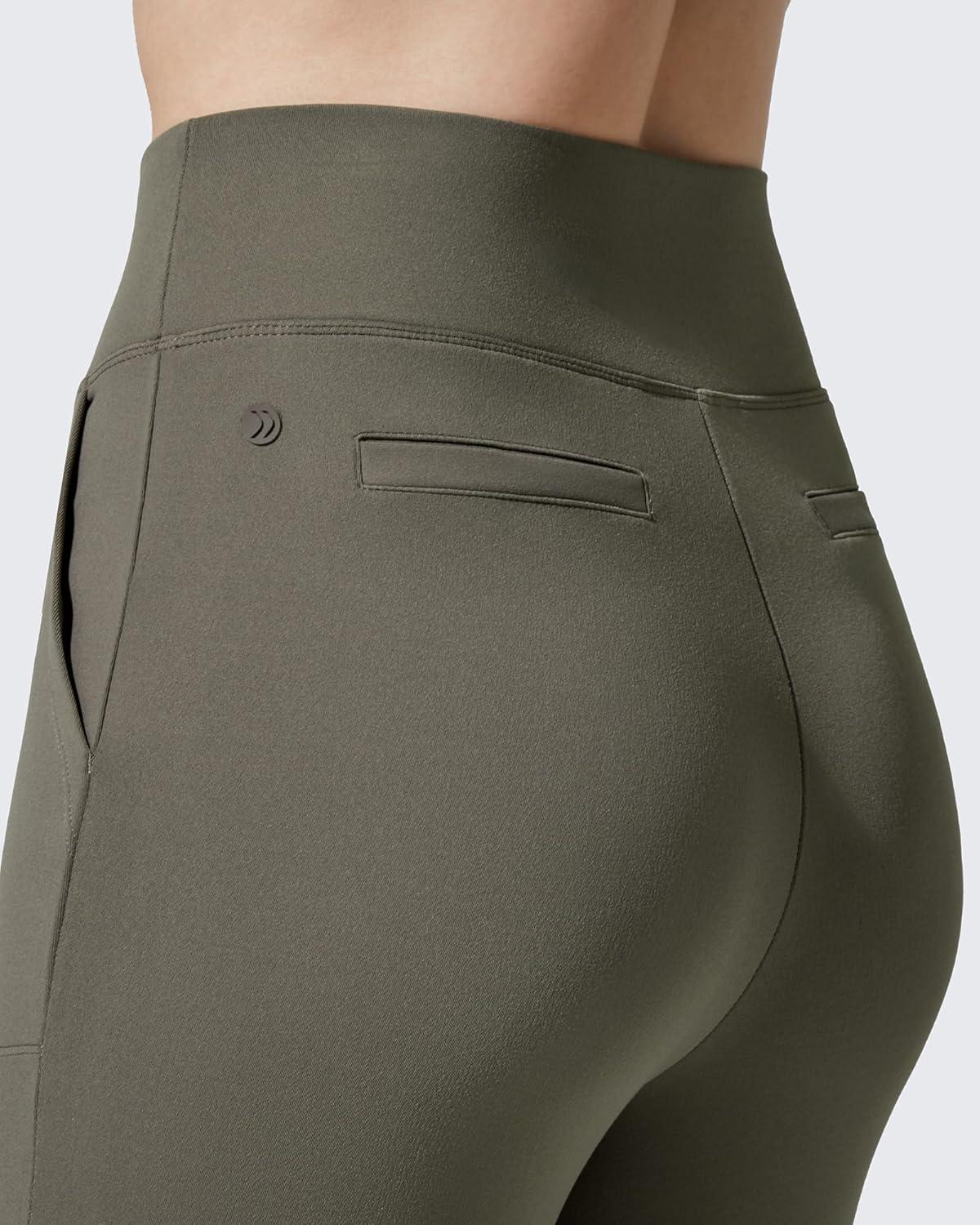 G4Free Barefeel Women’s Fleece Lined Flare Yoga Pants Winter Thermal High Waist Leggings with Pockets(Dark Taupe)
