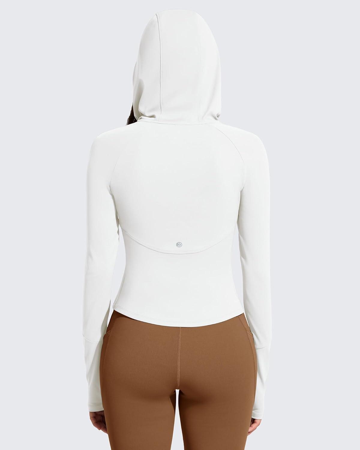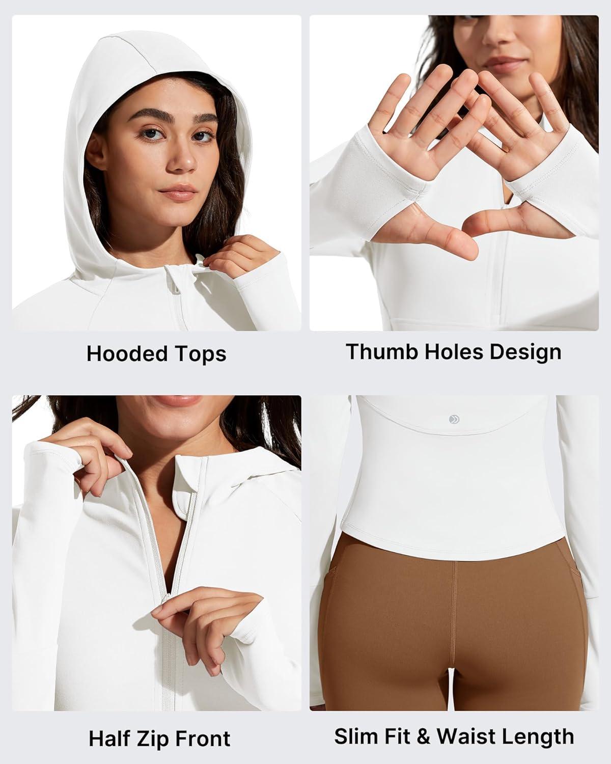 G4Free BareFeel Women’s Half Zip Pullover Hoodies Slim Fit Yoga Running Long Sleeve Tops with Thumbholes(Pure White)