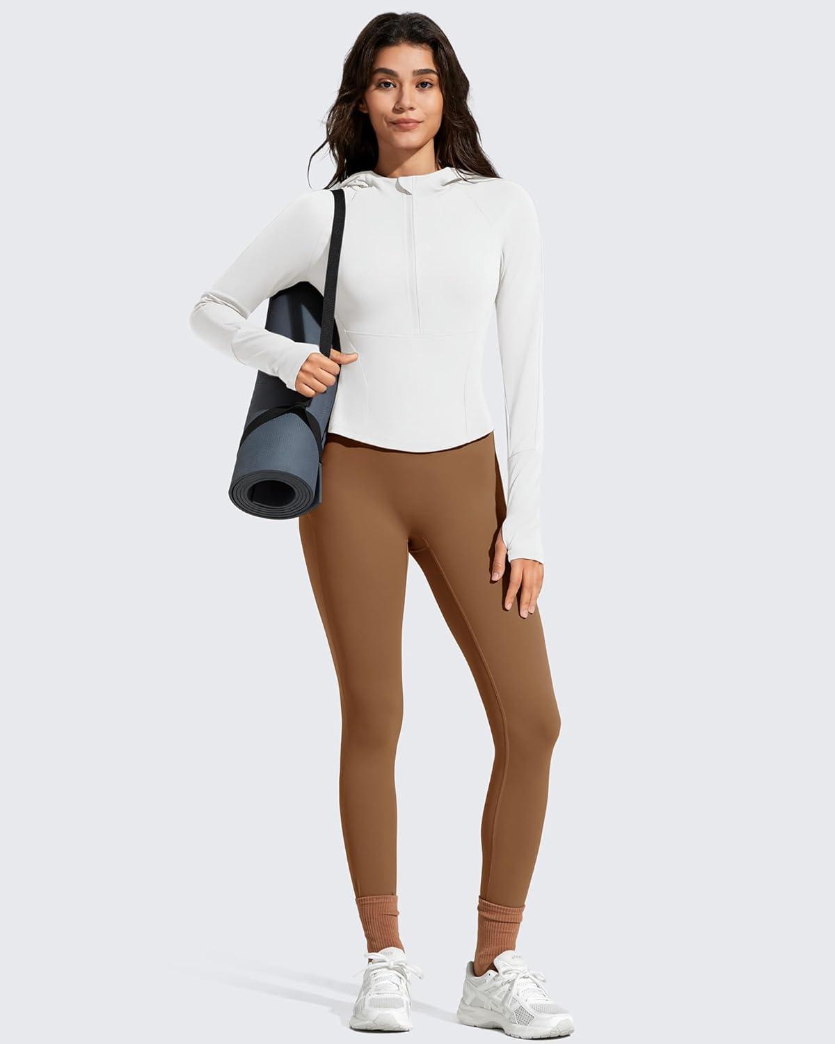 imageG4Free BareFeel Womens Half Zip Pullover Hoodies Slim Fit Yoga Running Long Sleeve Tops with ThumbholesPure White