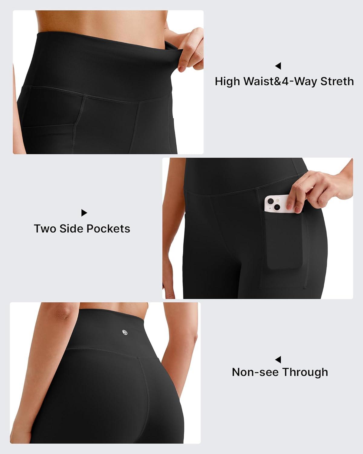G4Free BareFeel Yoga Pants for Women Seamless Waistband Yoga Leggings Workout Biker Leggings with Pockets 25" 27" 29"(Black)
