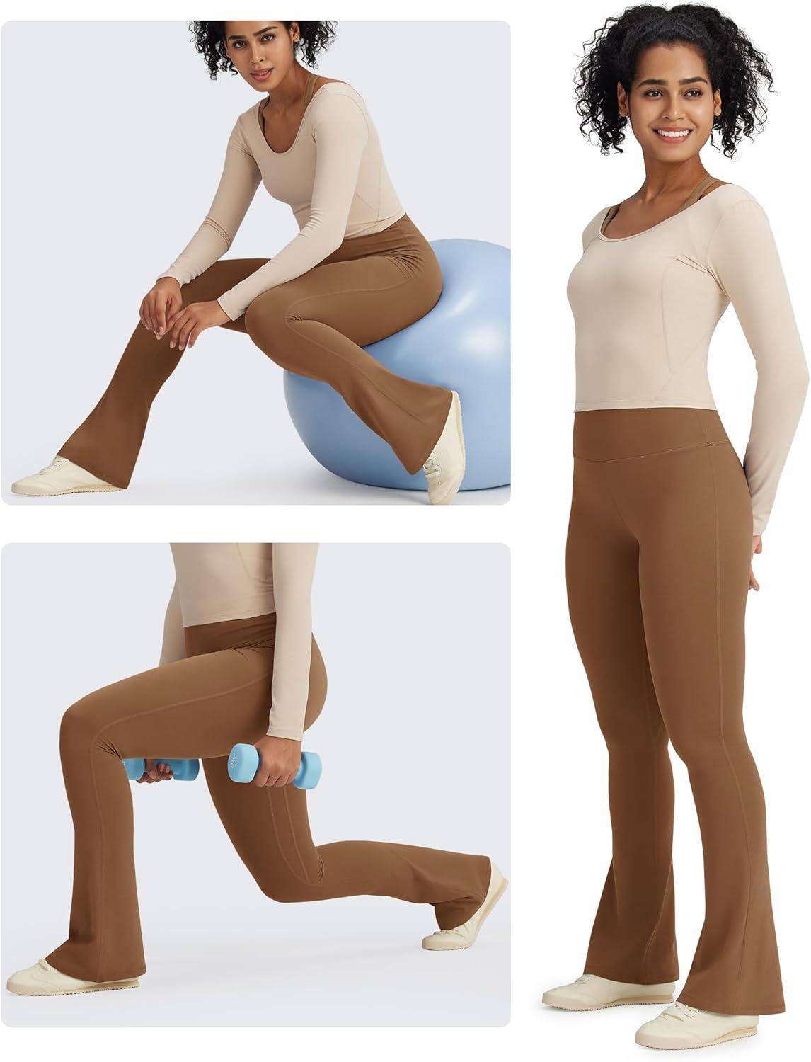 G4Free BareFeel Yoga Pants Women High Waisted Flare Leggings Soft Bootcut Wide Leg Flared Pants 29"/31"/33"(Coffee)