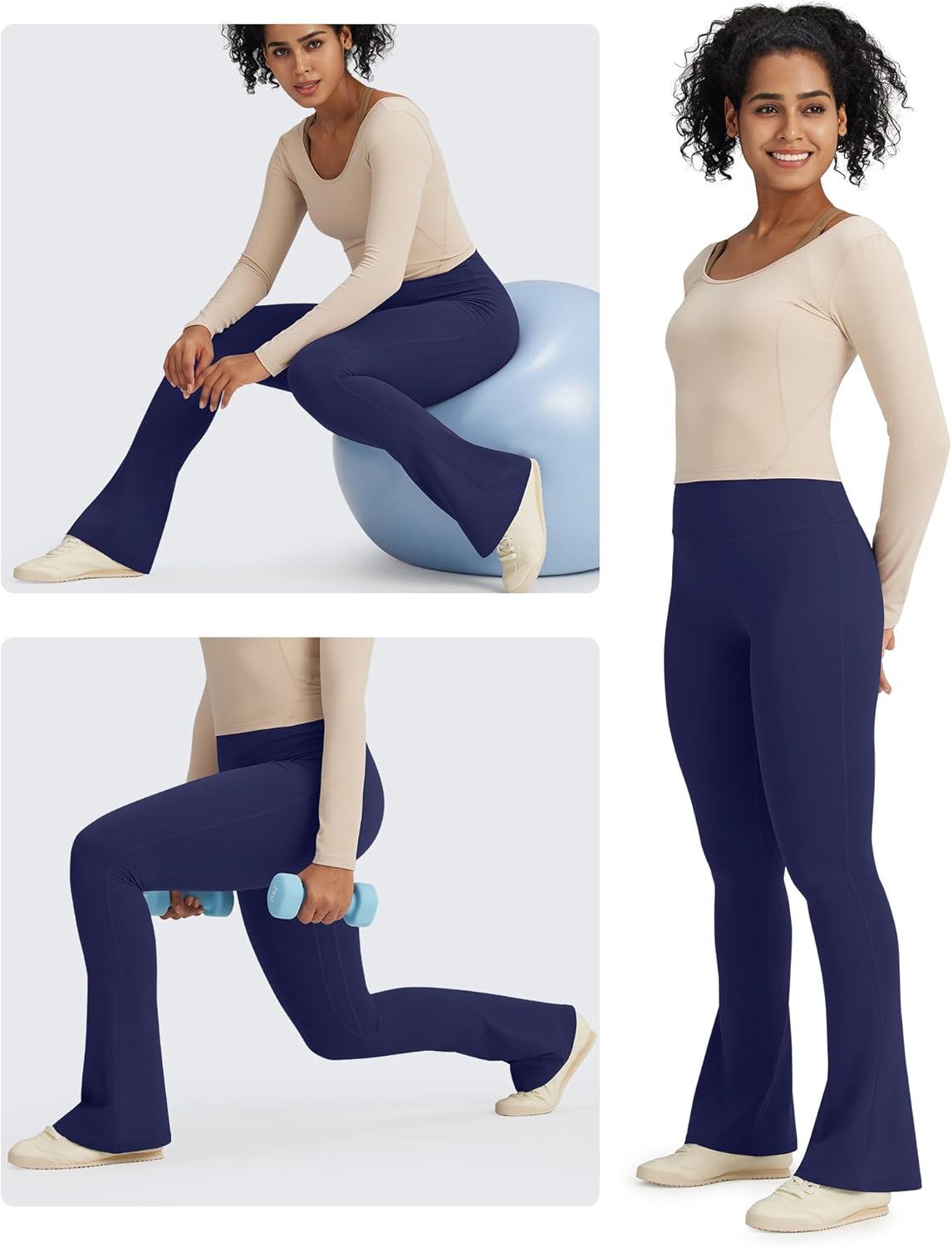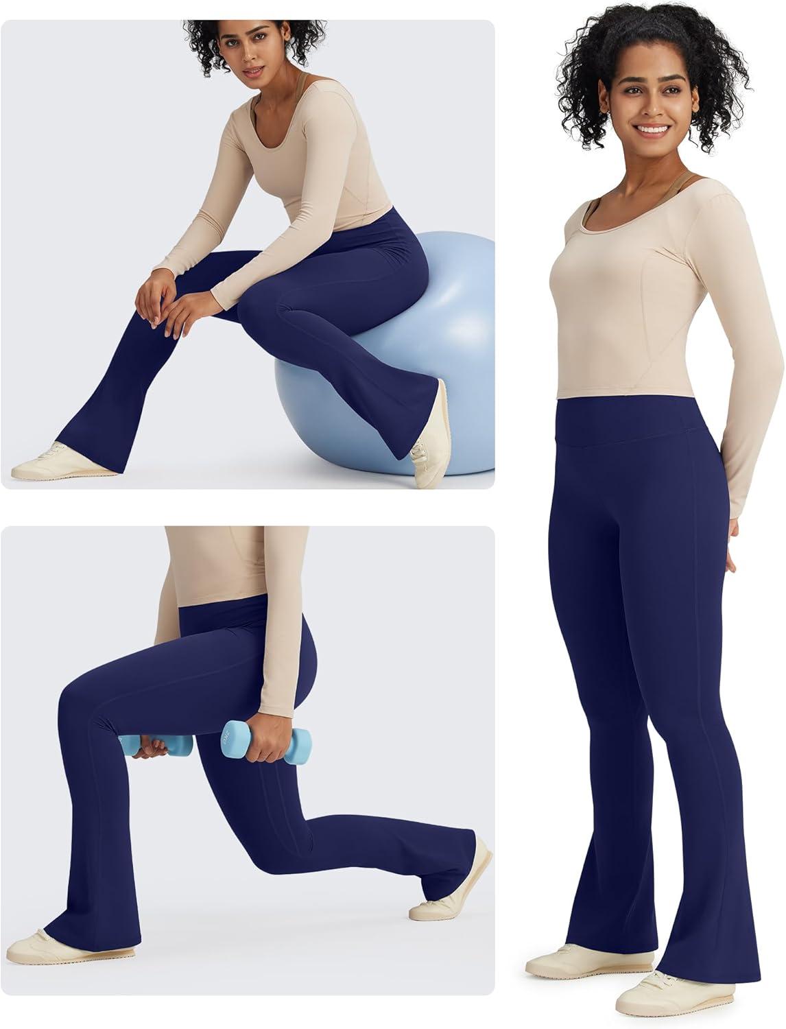G4Free BareFeel Yoga Pants Women High Waisted Flare Leggings Soft Bootcut Wide Leg Flared Pants 29″/31″/33″(Navy)