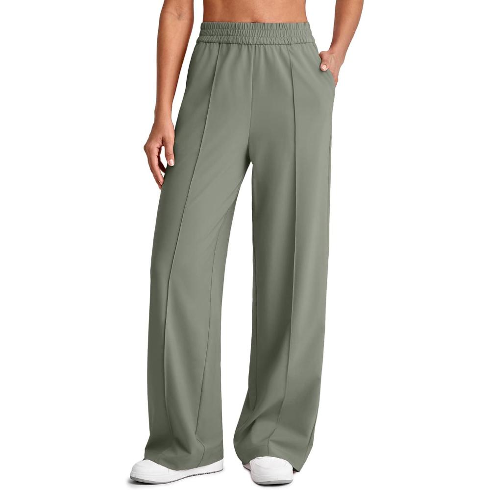 G4Free Chillwhisp Lightweight Flowy Wide Leg Pants Woman Elastic Waist Front Seam Track Pants Casual Lounge(Gray Olive)