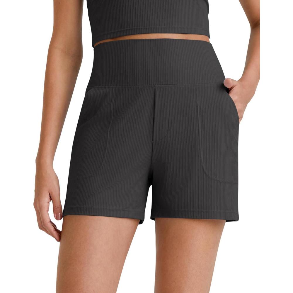 G4Free Comfy Ribbed Womens Athletic Shorts 4’’ Dressy Casual High Waisted Lounge Workout Shorts with Side Pockets(Black)