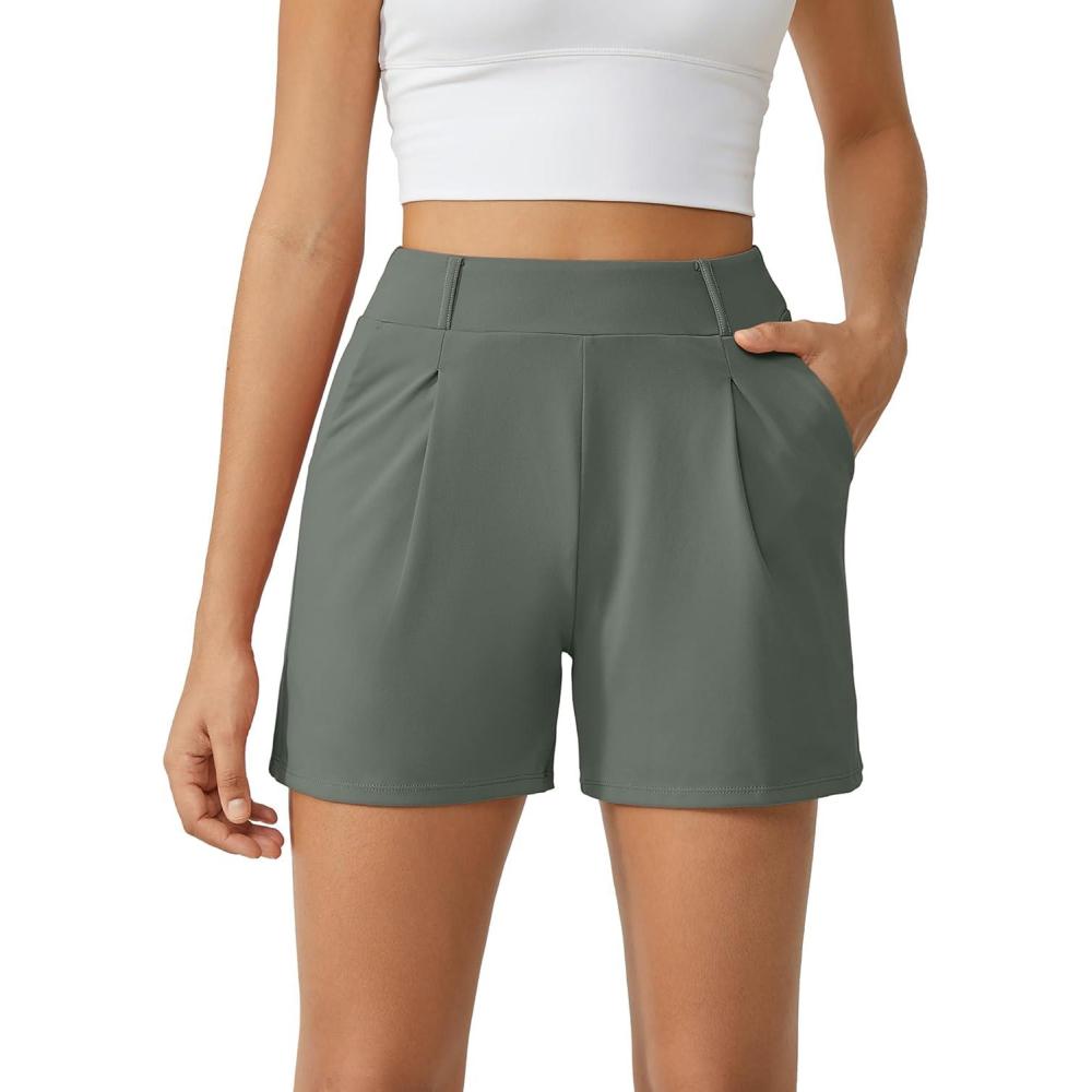 G4Free EverGoing Dressy Casual Shorts for Women High Waisted Summer Lounge Pleated Shorts with Pockets(Grey Sage)