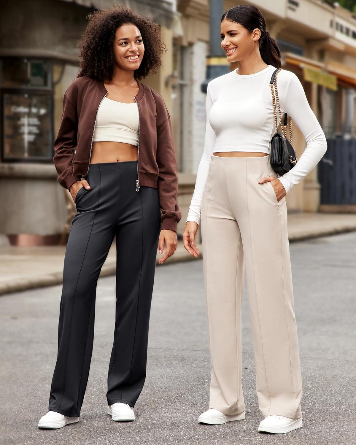 G4Free EverGoing Wide Leg Pants for Women High Waisted Yoga Pants with Pockets Stretch Casual Lounge Pants(Black)