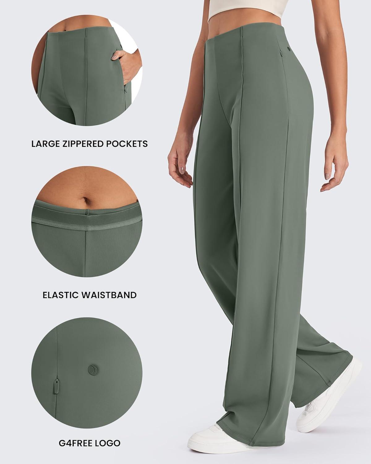 G4Free EverGoing Wide Leg Pants for Women High Waisted Yoga Pants with Pockets Stretch Casual Lounge Pants(Gray Sage)