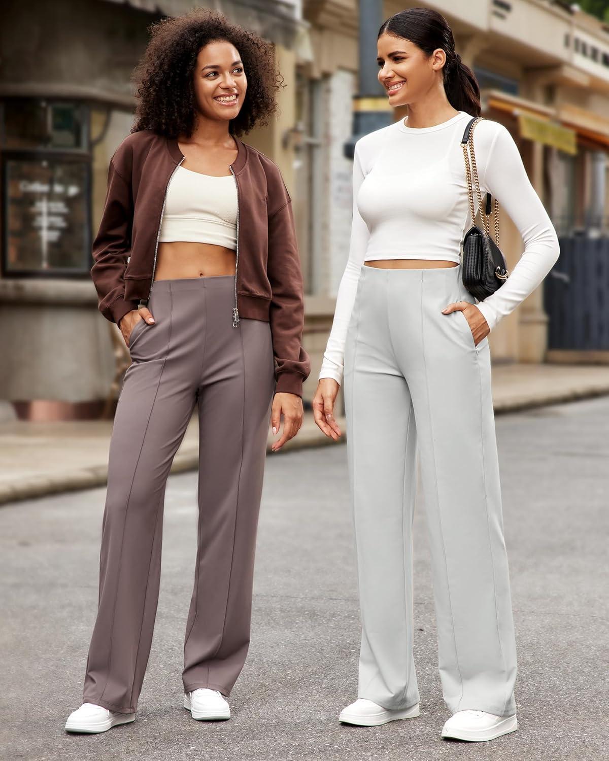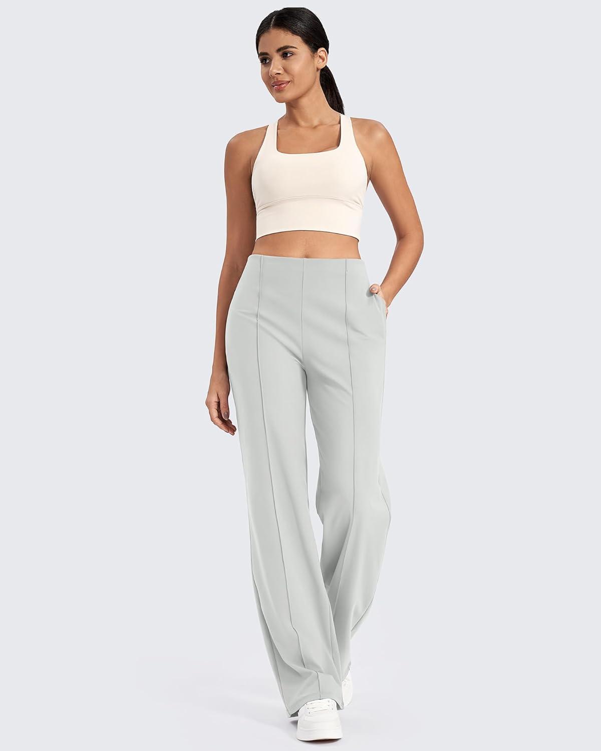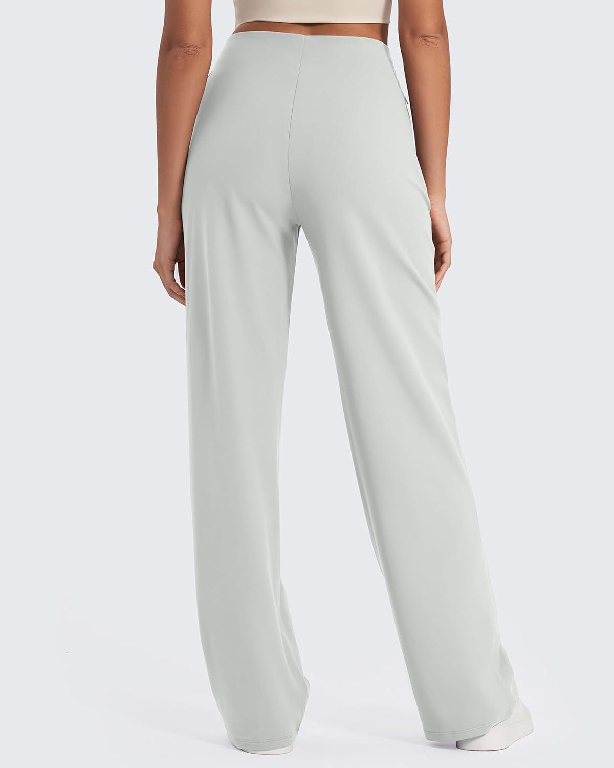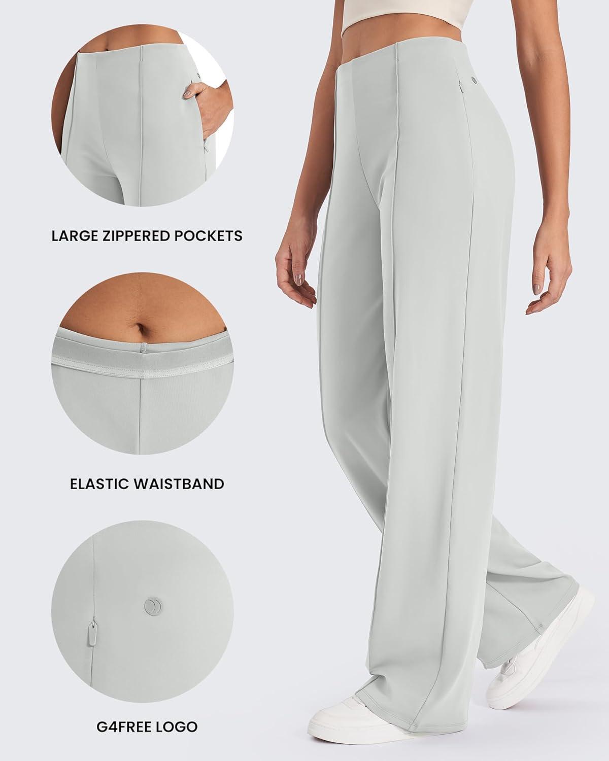 G4Free EverGoing Wide Leg Pants for Women High Waisted Yoga Pants with Pockets Stretch Casual Lounge Pants(Light Gray)
