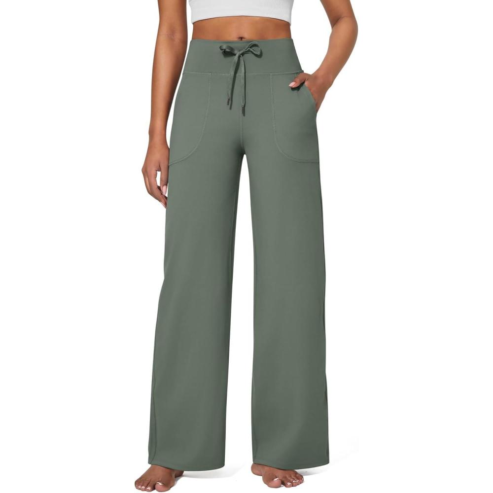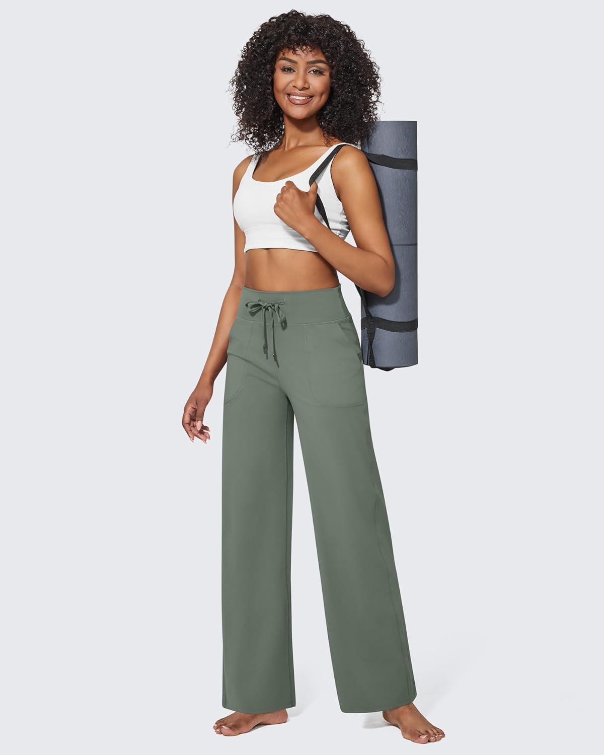 G4Free EverGoing Wide Leg Pants for Women Yoga Pants High Waist Sweatpants with Pockets Stretch Lounge Pants Comfy Workout(Grey Sage)