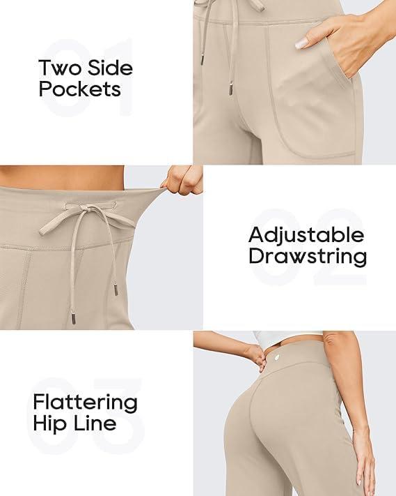 G4Free EverGoing Wide Leg Pants for Women Yoga Pants High Waist Sweatpants with Pockets Stretch Lounge Pants Comfy Workout(Khaki)