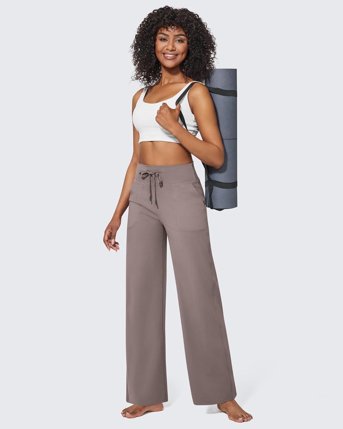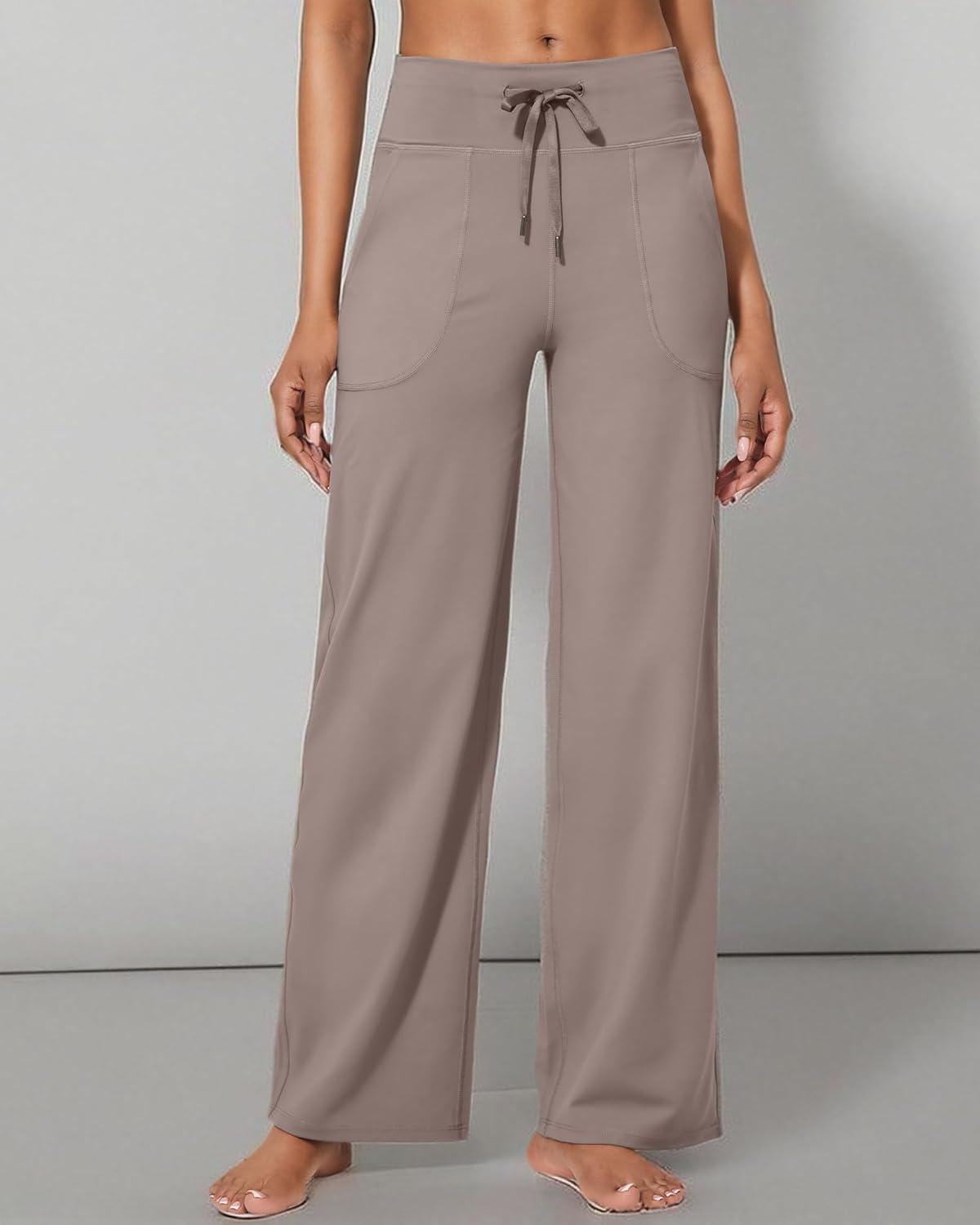 G4Free EverGoing Wide Leg Pants for Women Yoga Pants High Waist Sweatpants with Pockets Stretch Lounge Pants Comfy Workout(Taupe)