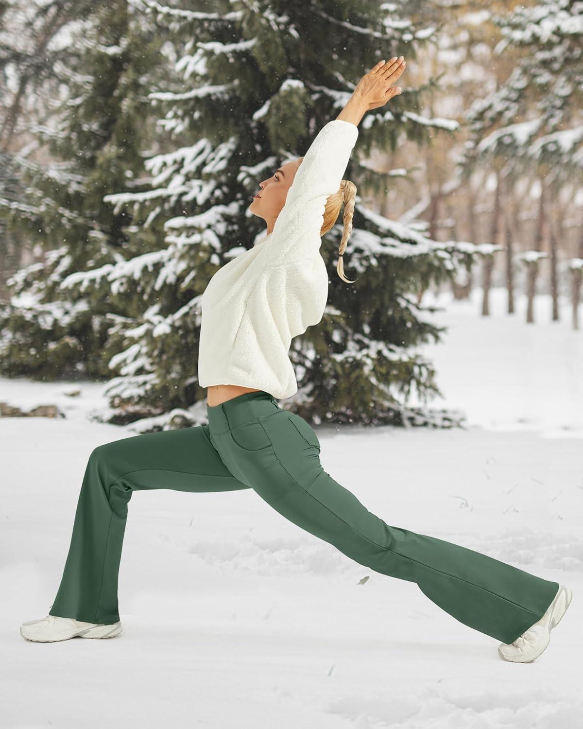 G4Free Fleece Lined Leggings Women Yoga Dress Pants with 4 Pockets Stretchy Work Pants Business Casual 29″/31″/33″(Dark Forest Green)
