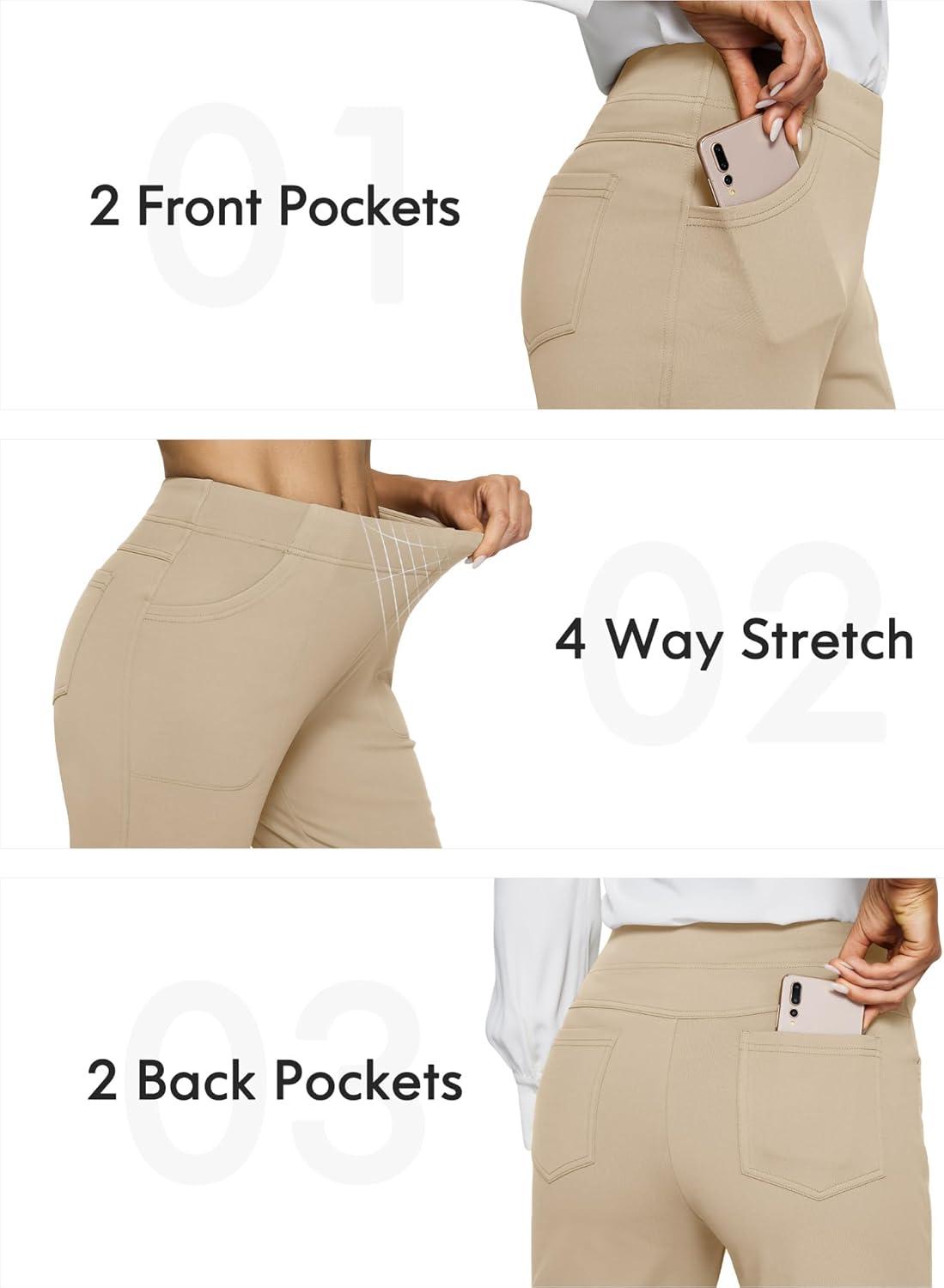 imageG4Free Fleece Lined Pants for Women Yoga Pants with Pockets Flare Leggings High Waisted Bootcut Dress Winter Work SlacksLight Khaki