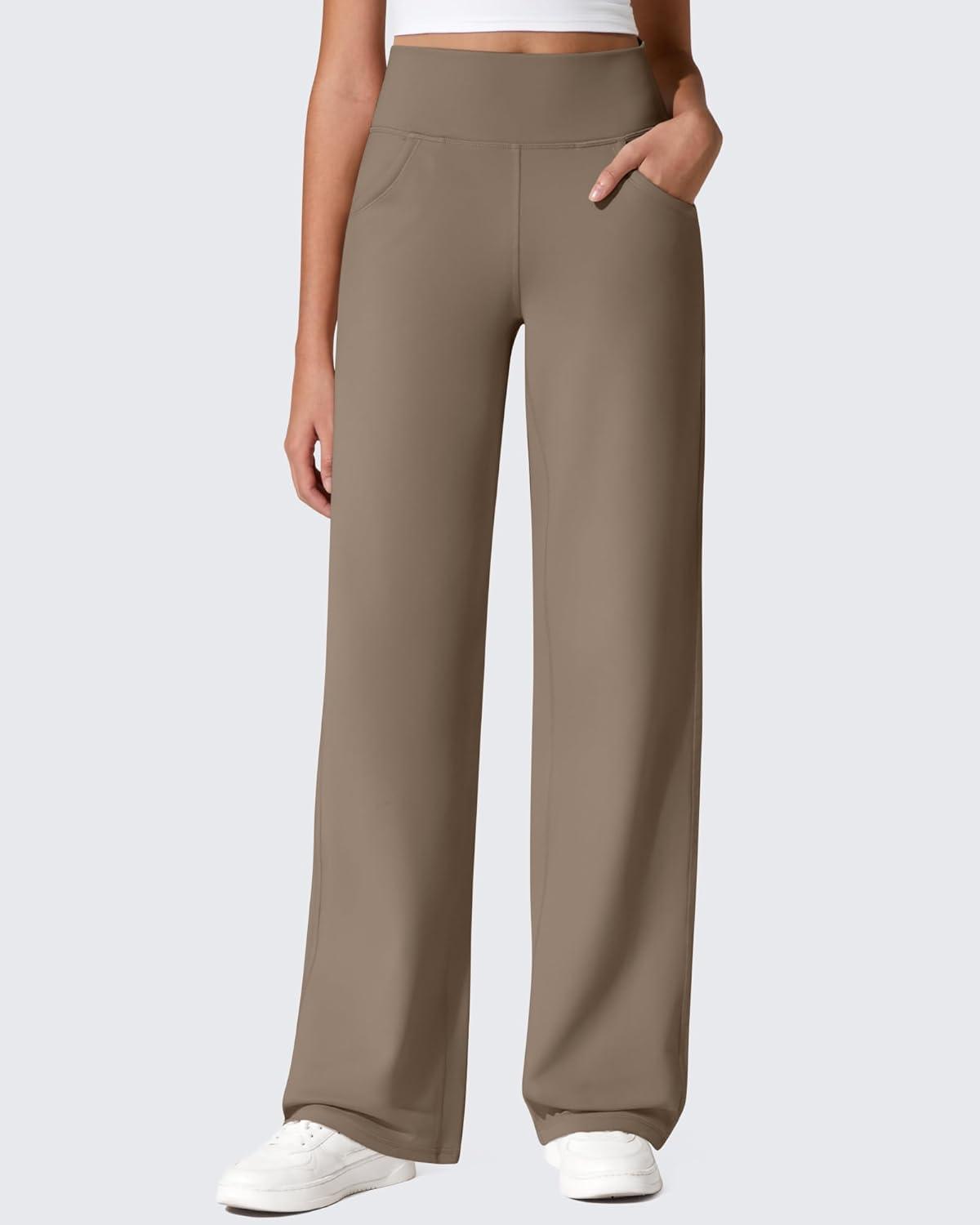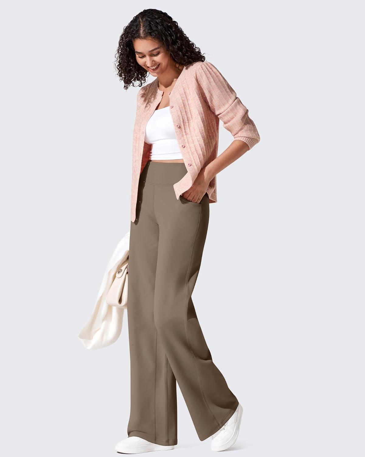 imageG4Free Fleece Lined Pants Women Wide Leg Work Trousers with Pockets High Waisted Sweatpants for Casual Dress WinterDark Brown