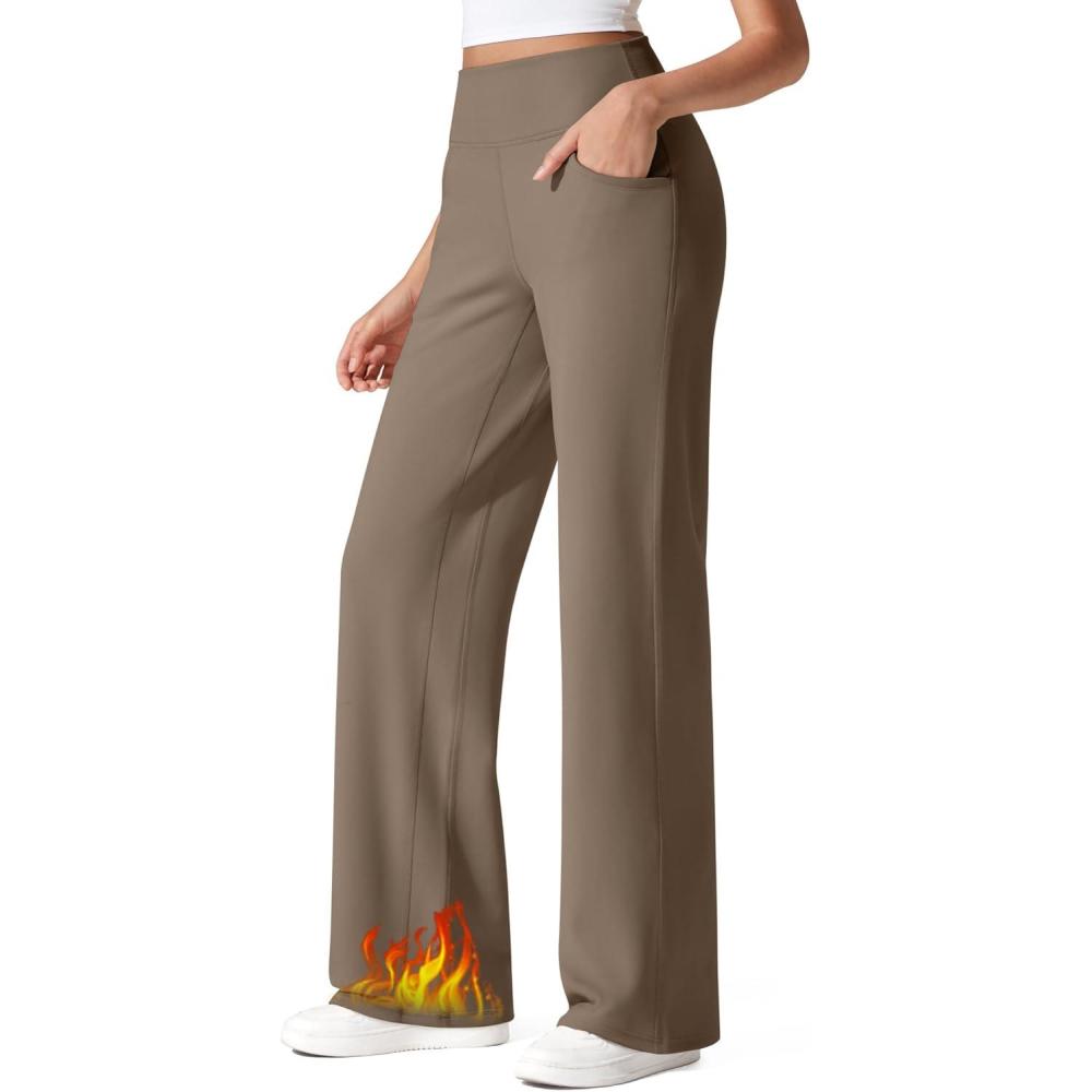 G4Free Fleece Lined Pants Women Wide Leg Work Trousers with Pockets High Waisted Sweatpants for Casual Dress Winter(Dark Brown)