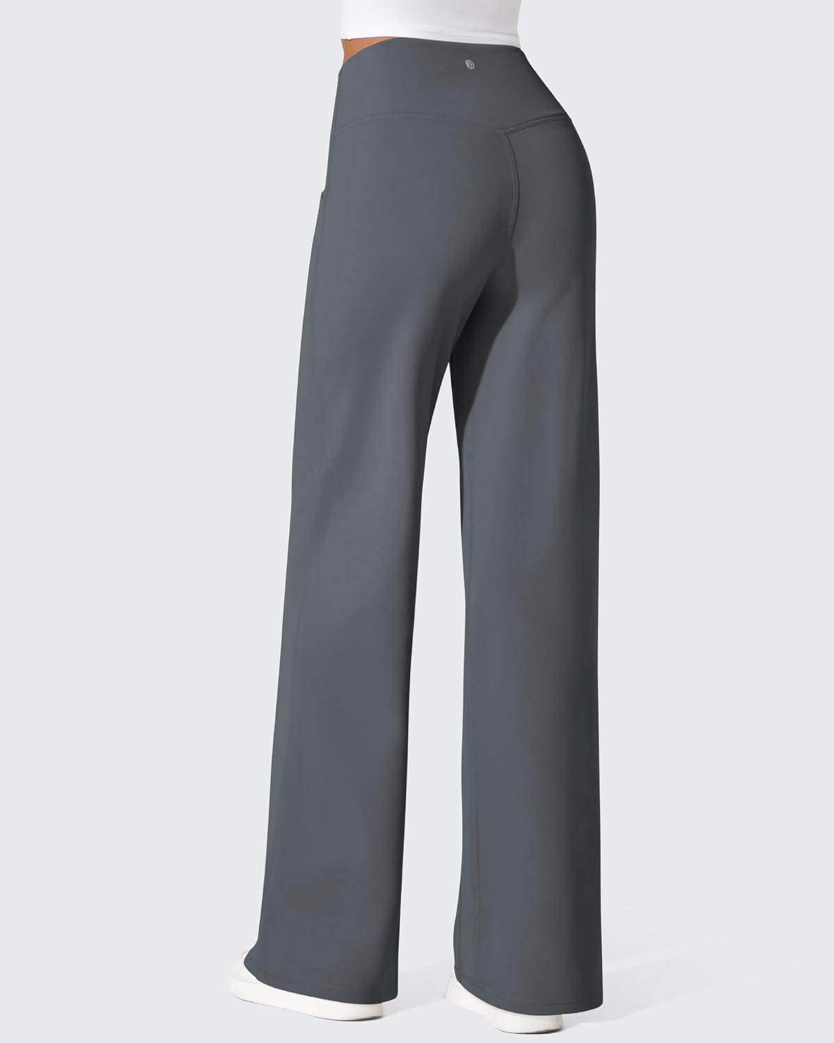 G4Free Fleece Lined Pants Women Wide Leg Work Trousers with Pockets High Waisted Sweatpants for Casual Dress Winter(Dark Grey)