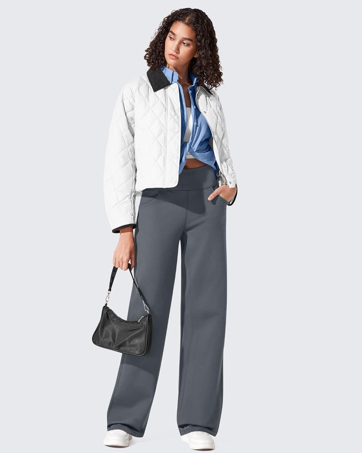 imageG4Free Fleece Lined Pants Women Wide Leg Work Trousers with Pockets High Waisted Sweatpants for Casual Dress WinterDark Grey