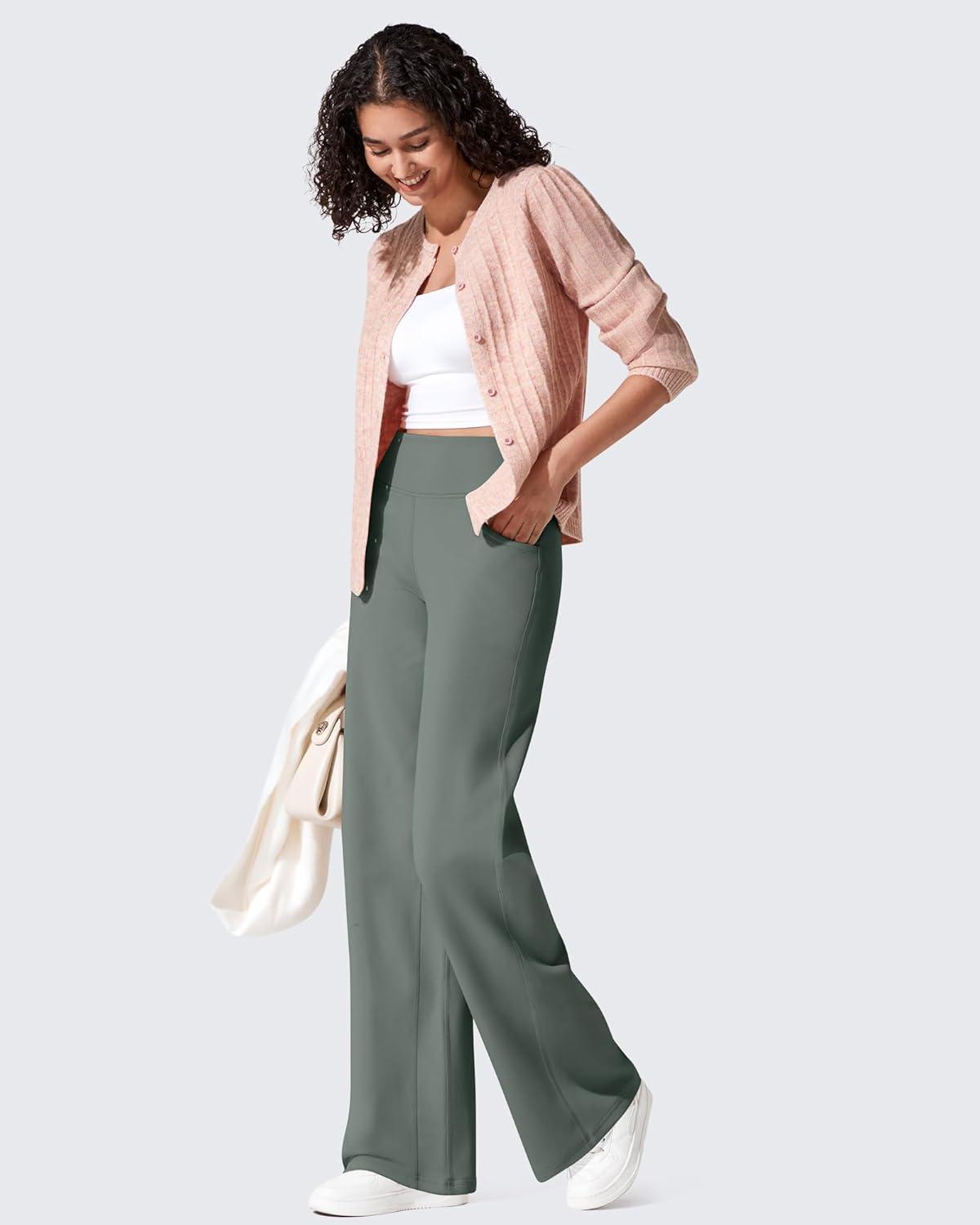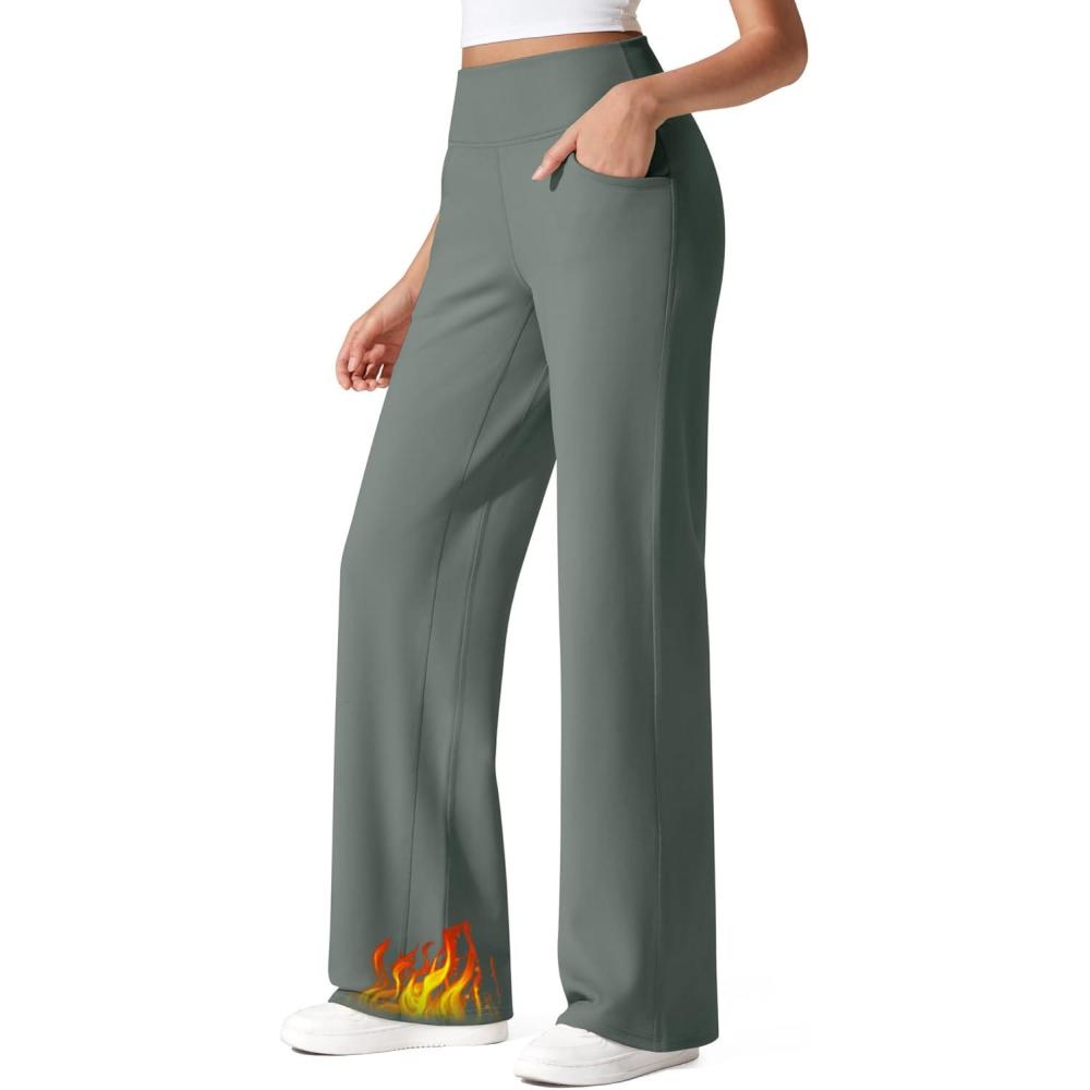 imageG4Free Fleece Lined Pants Women Wide Leg Work Trousers with Pockets High Waisted Sweatpants for Casual Dress WinterGray Sage