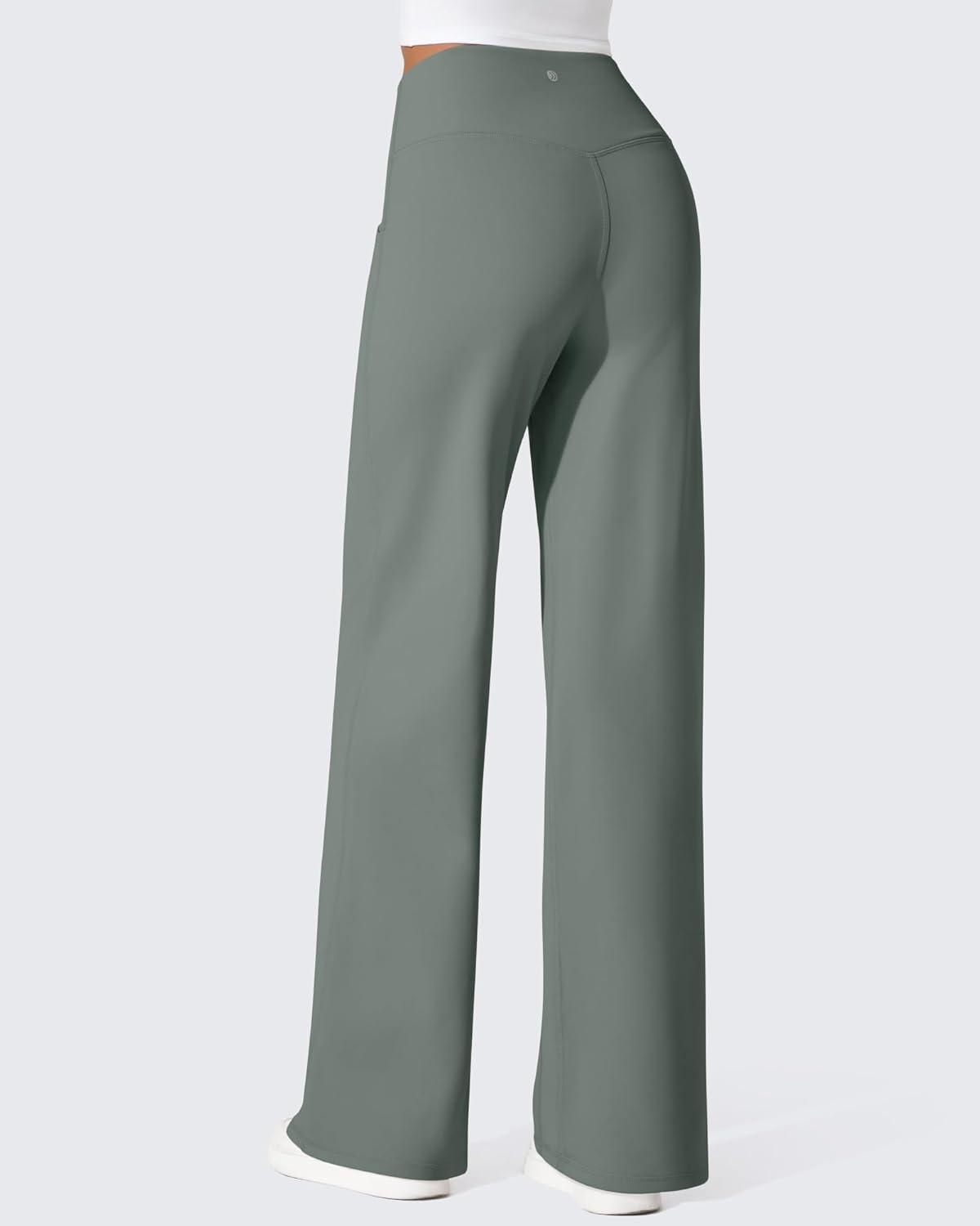 G4Free Fleece Lined Pants Women Wide Leg Work Trousers with Pockets High Waisted Sweatpants for Casual Dress Winter(Gray Sage)