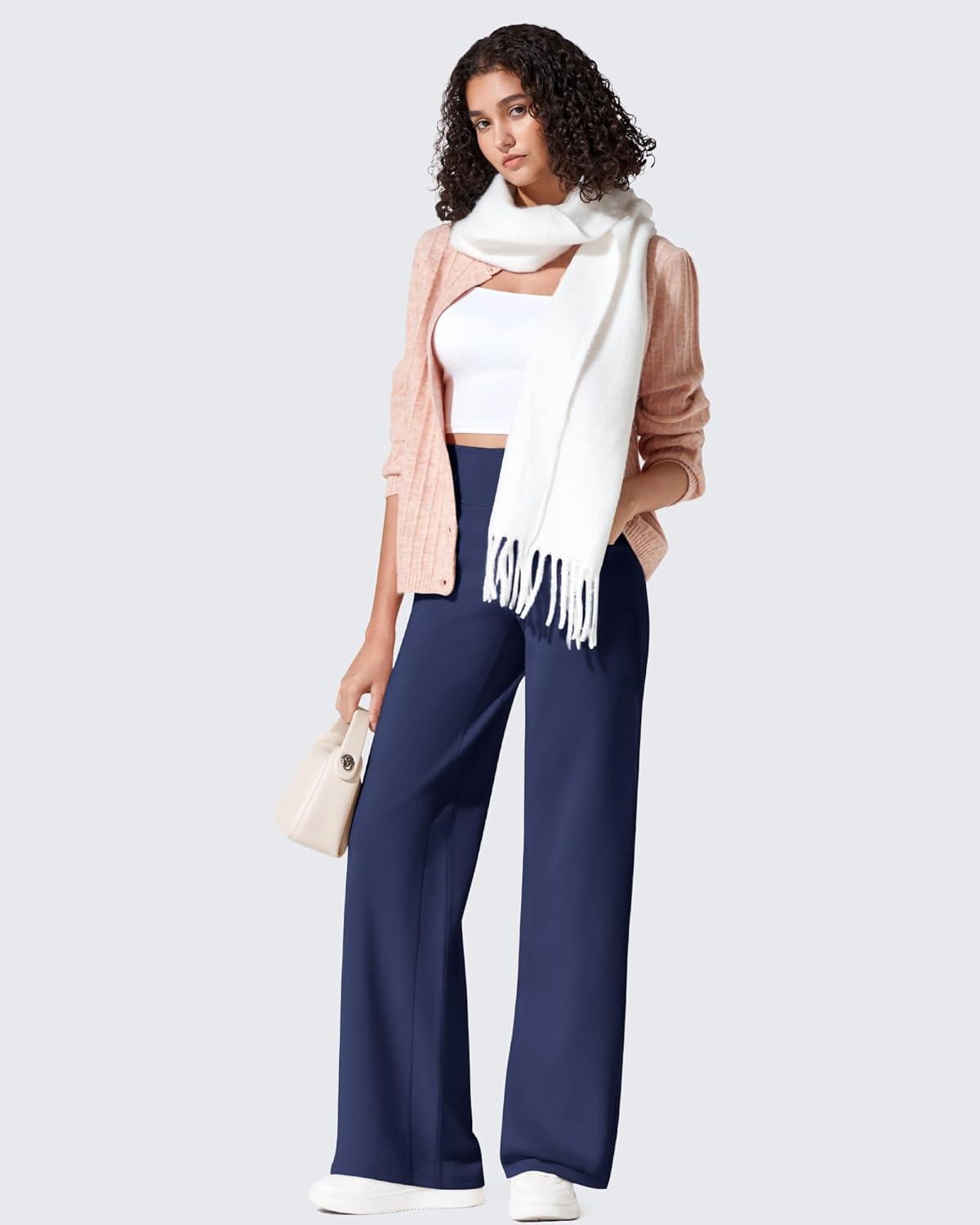 imageG4Free Fleece Lined Pants Women Wide Leg Work Trousers with Pockets High Waisted Sweatpants for Casual Dress WinterRoyal Blue