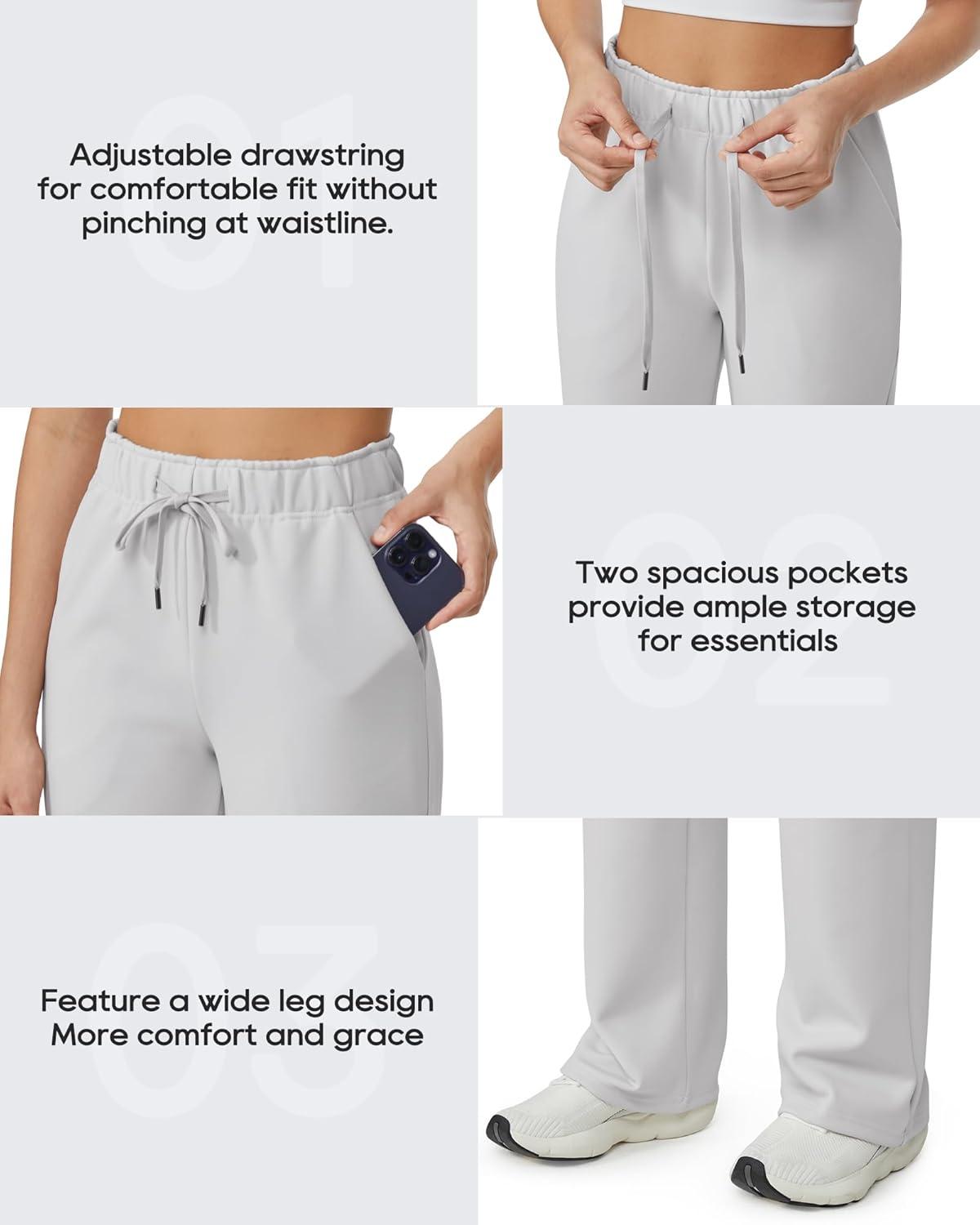 G4Free Fleece Lined Sweaterpants Women Elastic Drawstring Wide Leg Winter Trousers with Pockets for Casual Work(Glacier Gray)